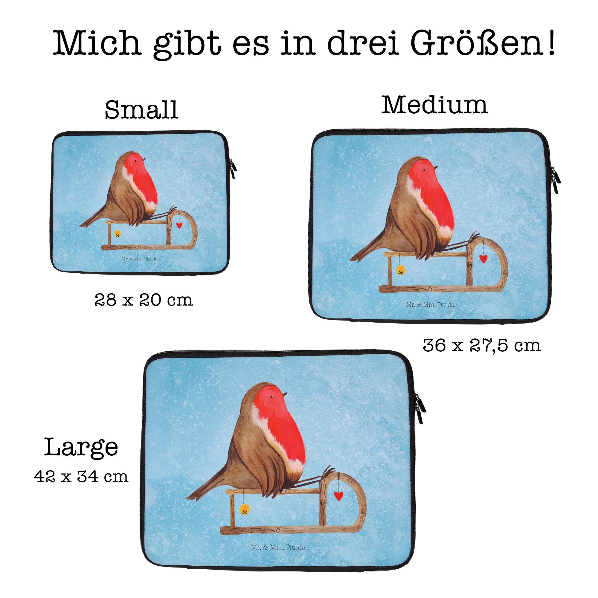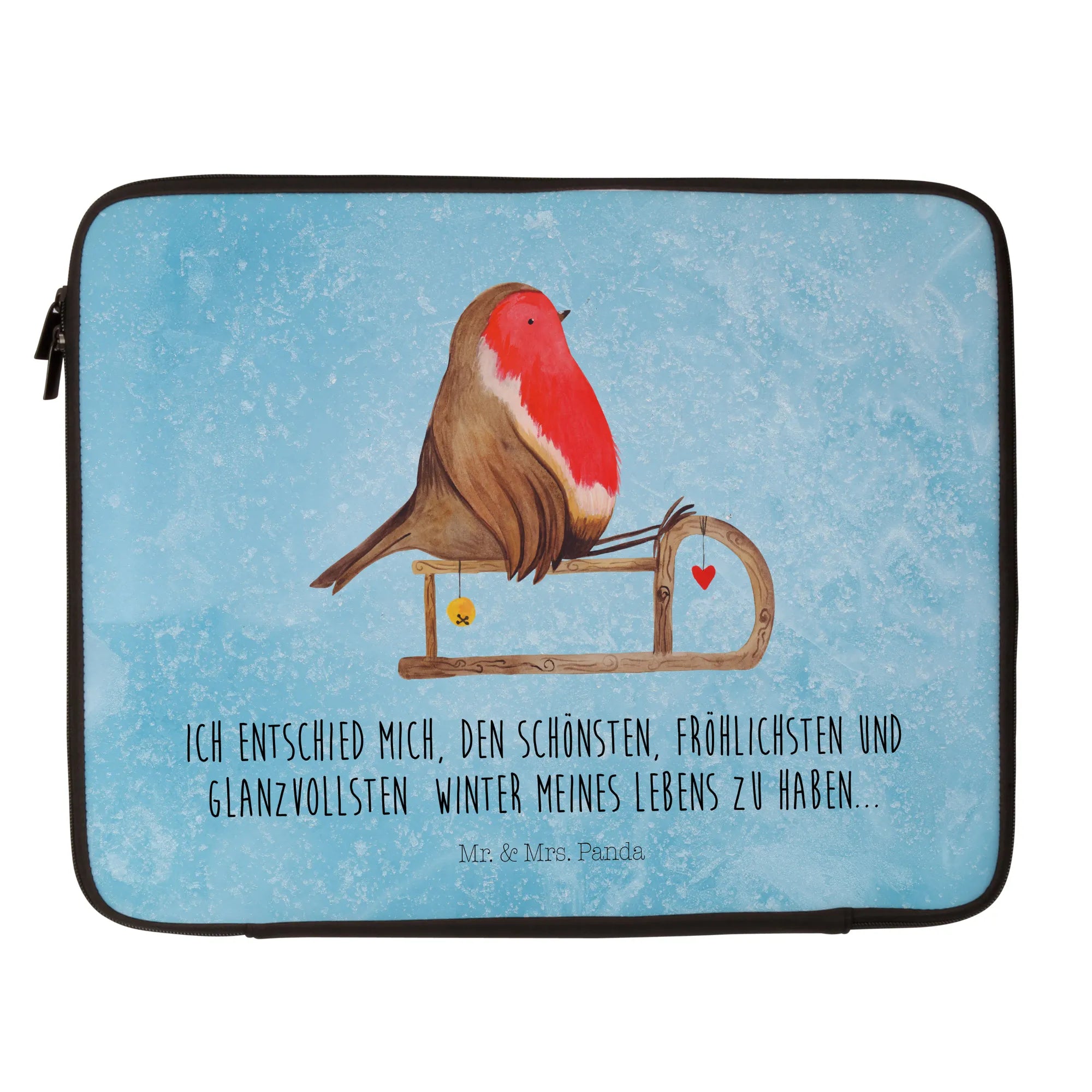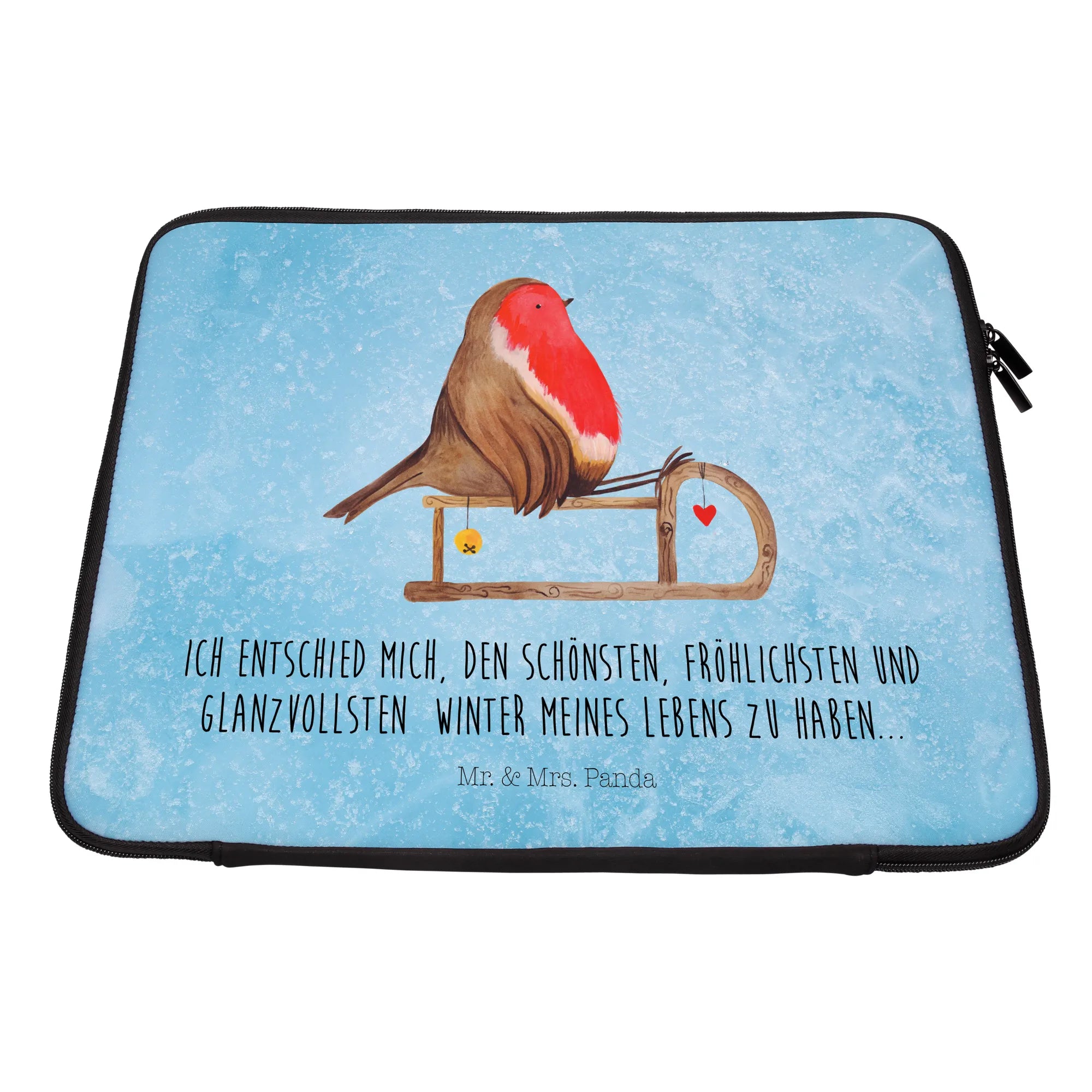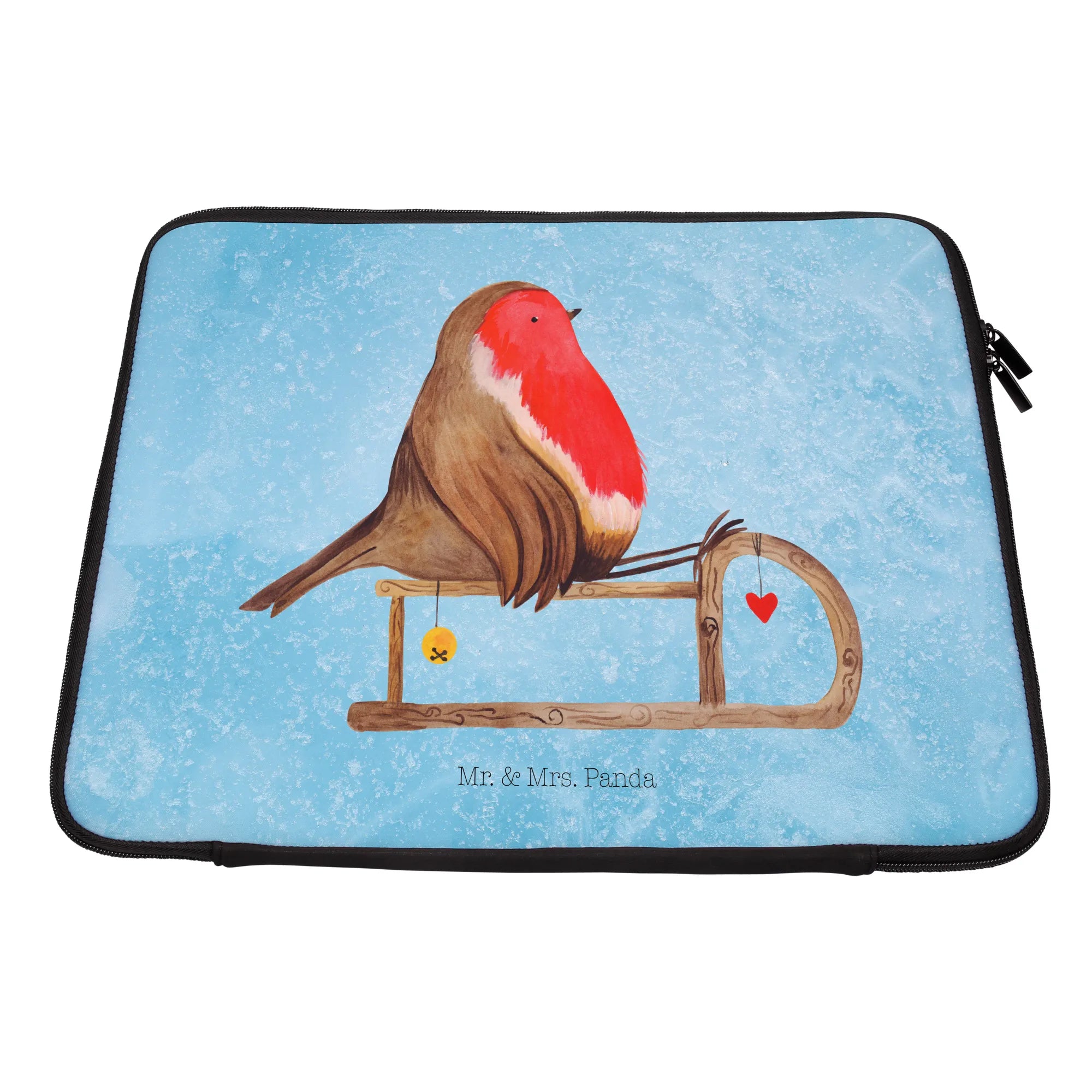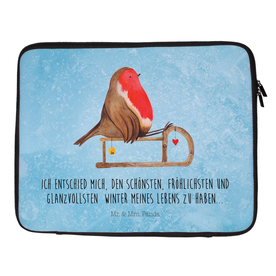 Die liebevoll gestaltete Notebook Tasche Rotkehlchen Schlitten von Mr. & Mrs. Panda ist das ideale Accessoire für all diejenigen, die ihre technischen Geräte stilvoll und sicher transportieren möchten.