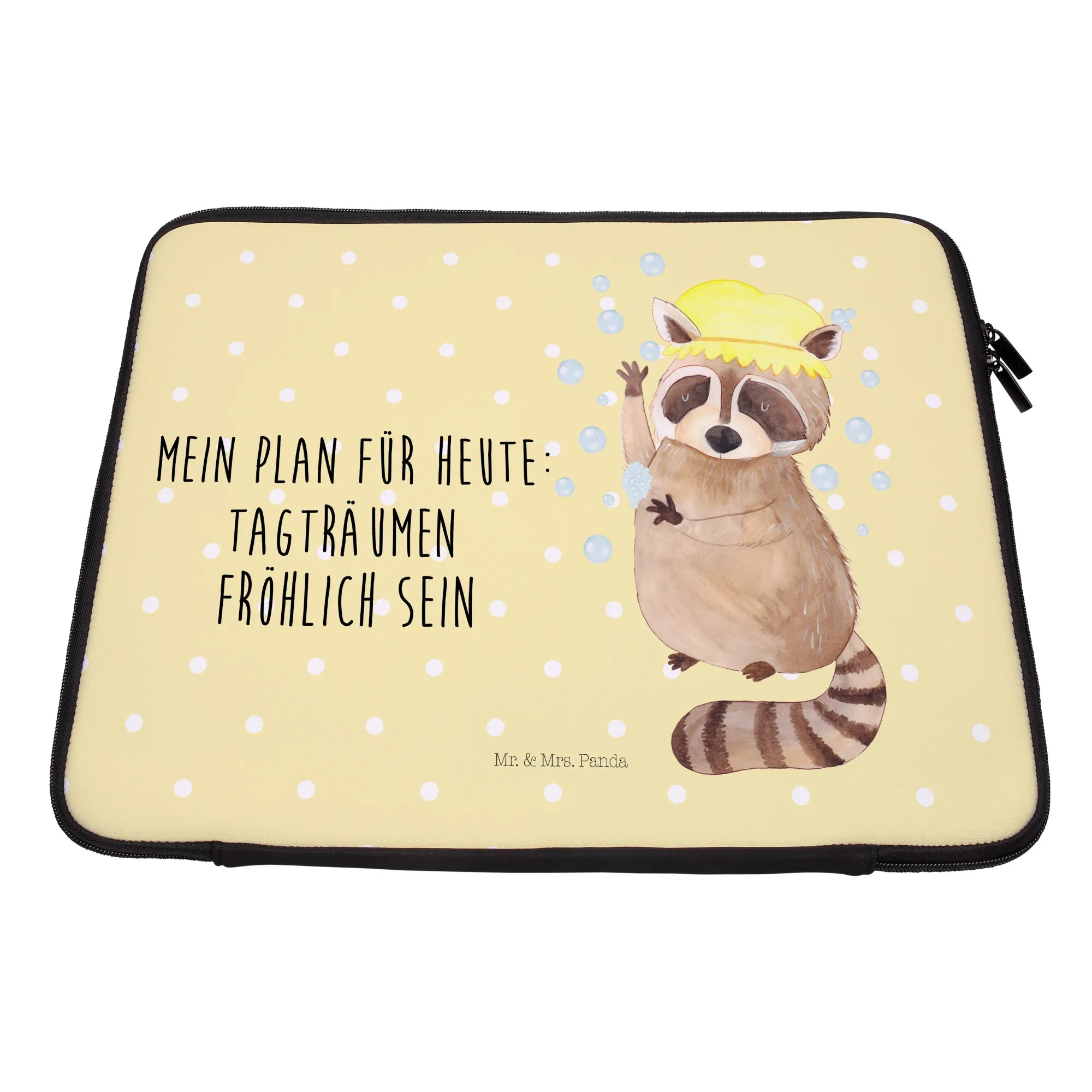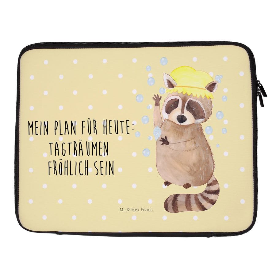 Das fröhliche Design mit niedlichem Waschbär und dem Slogan 'Mein Plan für heute: Tagträumen und fröhlich sein.' bringt dir beim Arbeiten ein Lächeln ins Gesicht. Diese Notebook-Reisehülle ist der perfekte Ort, um deine Technik sicher zu verstauen, während du gleichzeitig ein Stück gute Laune mit dir führst.