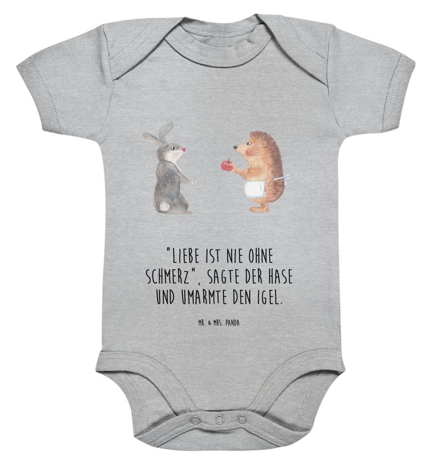 Der Organic Baby Body "Liebe ist nie ohne Schmerz" von Mr. & Mrs. Panda ist das perfekte Geschenk für die kleinsten Familienmitglieder. Mit einem liebevollen Design, das einen süßen Hase und einen niedlichen Igel zeigt, vermittelt dieser Babystrampler eine wichtige Botschaft über die Ambivalenz der Liebe. Der Spruch “Liebe ist nie ohne Schmerz“, sagte der Hase und umarmte den Igel, spricht nicht nur Kinder, sondern auch Eltern an und bietet eine schöne Möglichkeit, Gedanken über die verschiedenen Seiten von Beziehungen zu teilen.