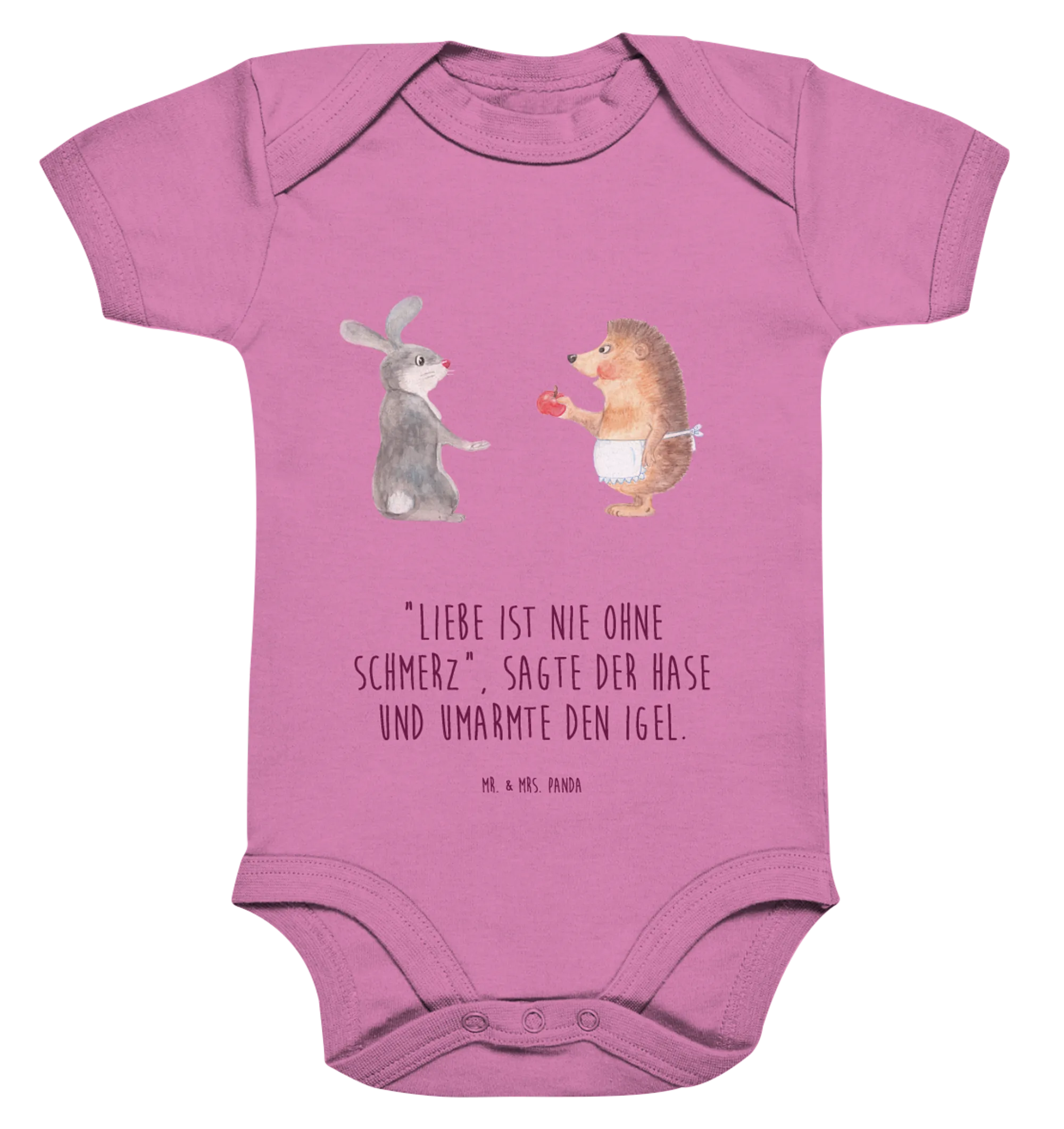 Der Organic Baby Body „Liebe ist nie ohne Schmerz“ von Mr. & Mrs. Panda ist der perfekte Begleiter für die kleinsten Liebhaber der Tierwelt. Mit dem süßen Motiv eines Hasen und eines Igels, die ineinander verliebt sind, erinnert dieser Strampler daran, dass die Liebe manchmal herausfordernd sein kann, aber dennoch wunderschön.
