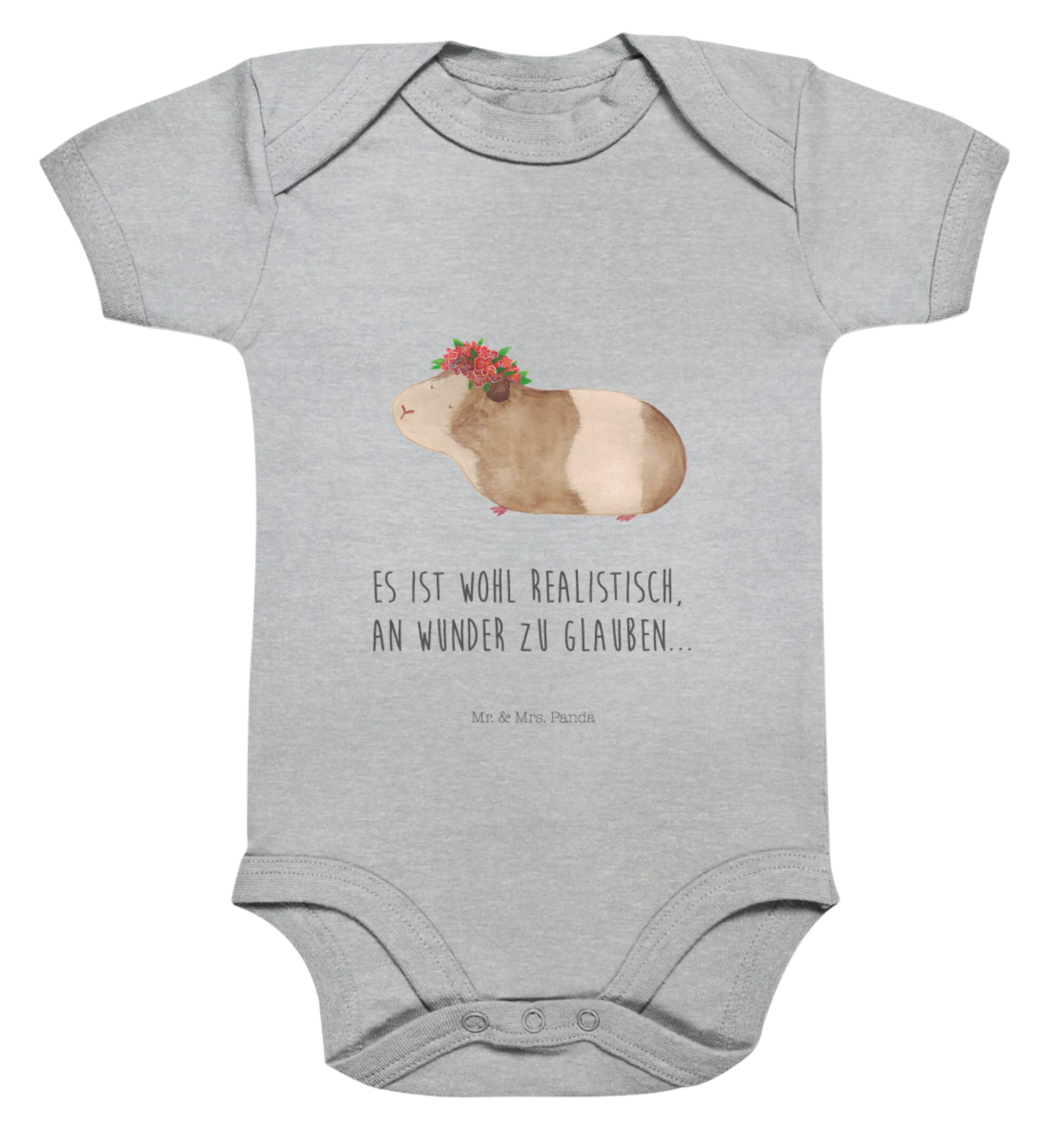 Der Heather Grey Hintergrund lässt das lustige Design des Meerschweinchens so richtig strahlen. Du kannst den Body zu besonderen Anlässen verschenken, sei es zur Geburt, zur Taufe oder einfach nur so, um Freude zu bereiten. Die Kollektion Small World ist eine der ältesten Sammlungen von Mr. & Mrs. Panda und bietet eine bunten Mischung aus Tiermotiven und lebensfrohen Sprüchen.