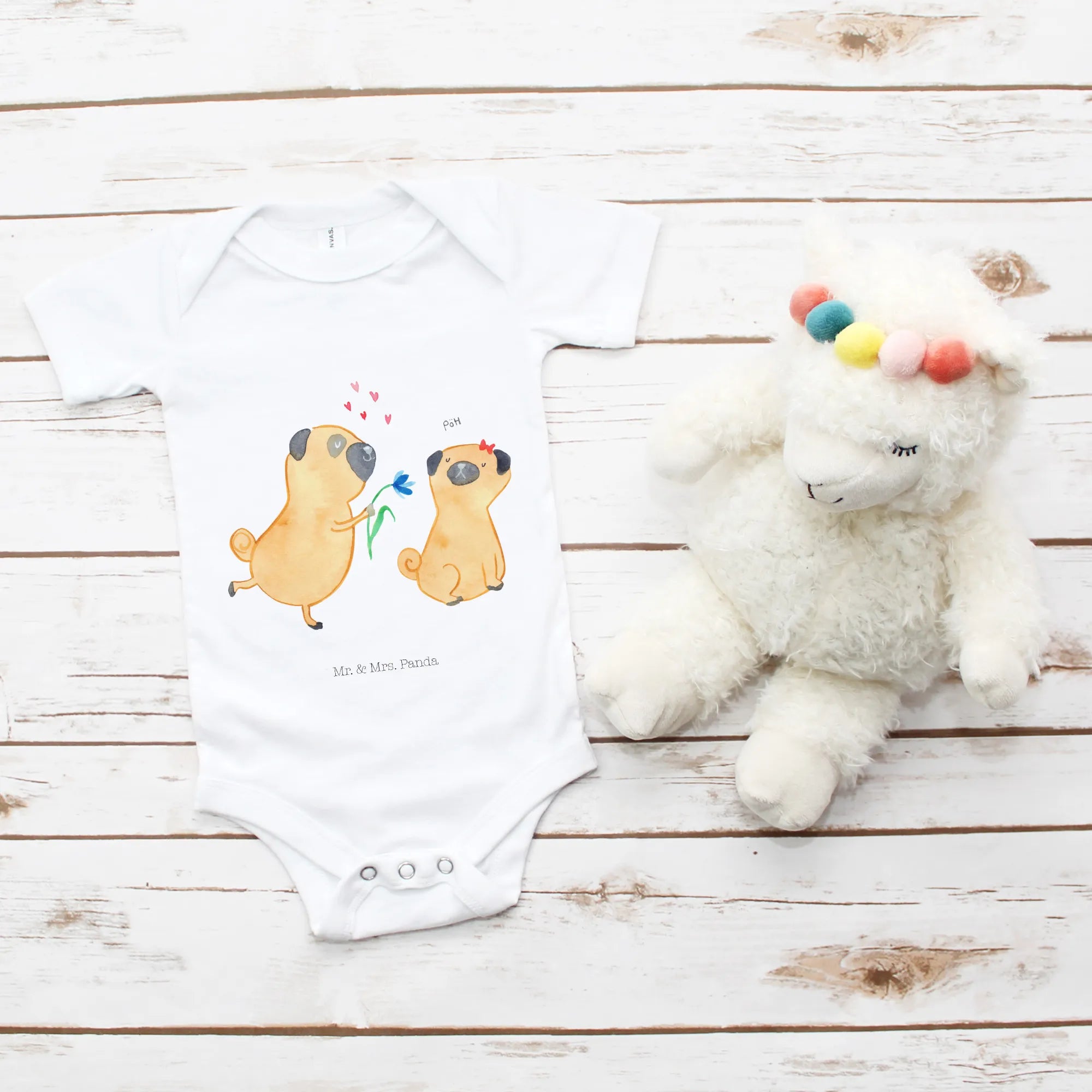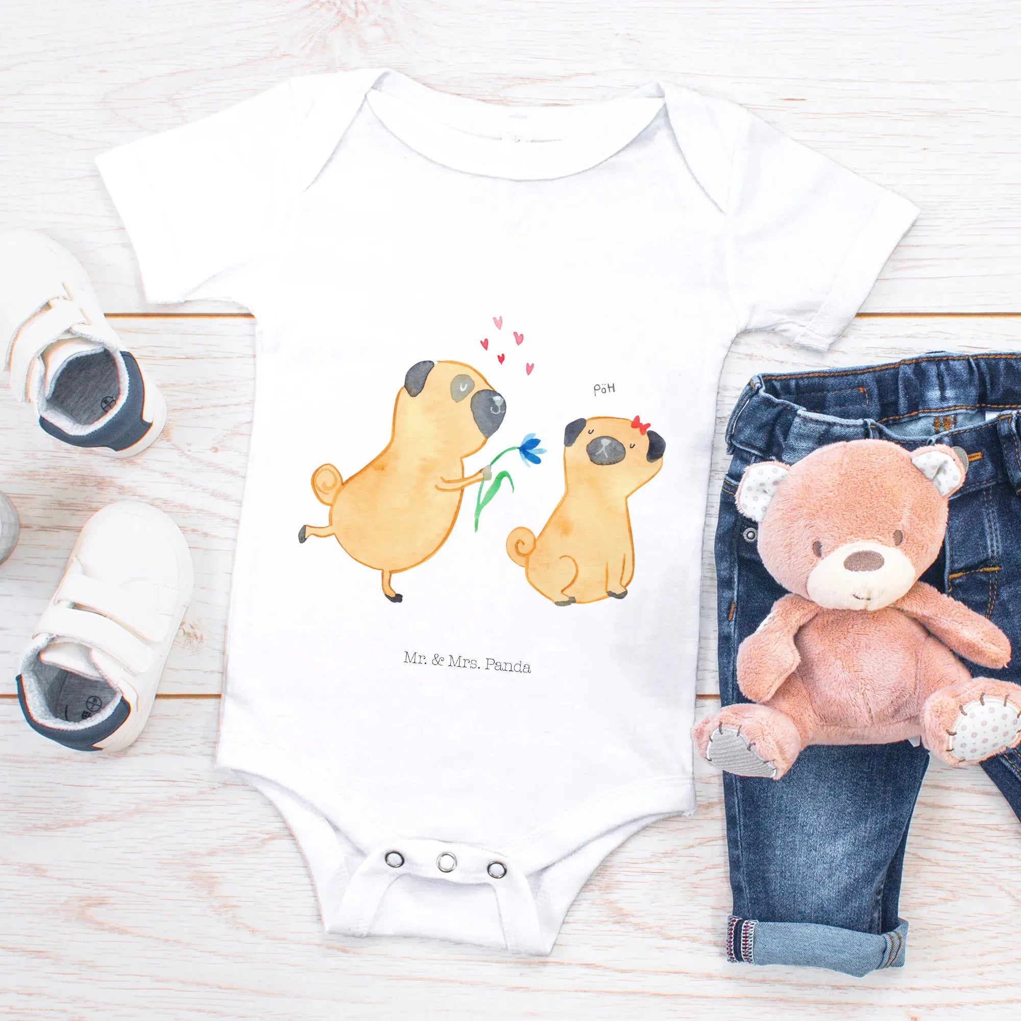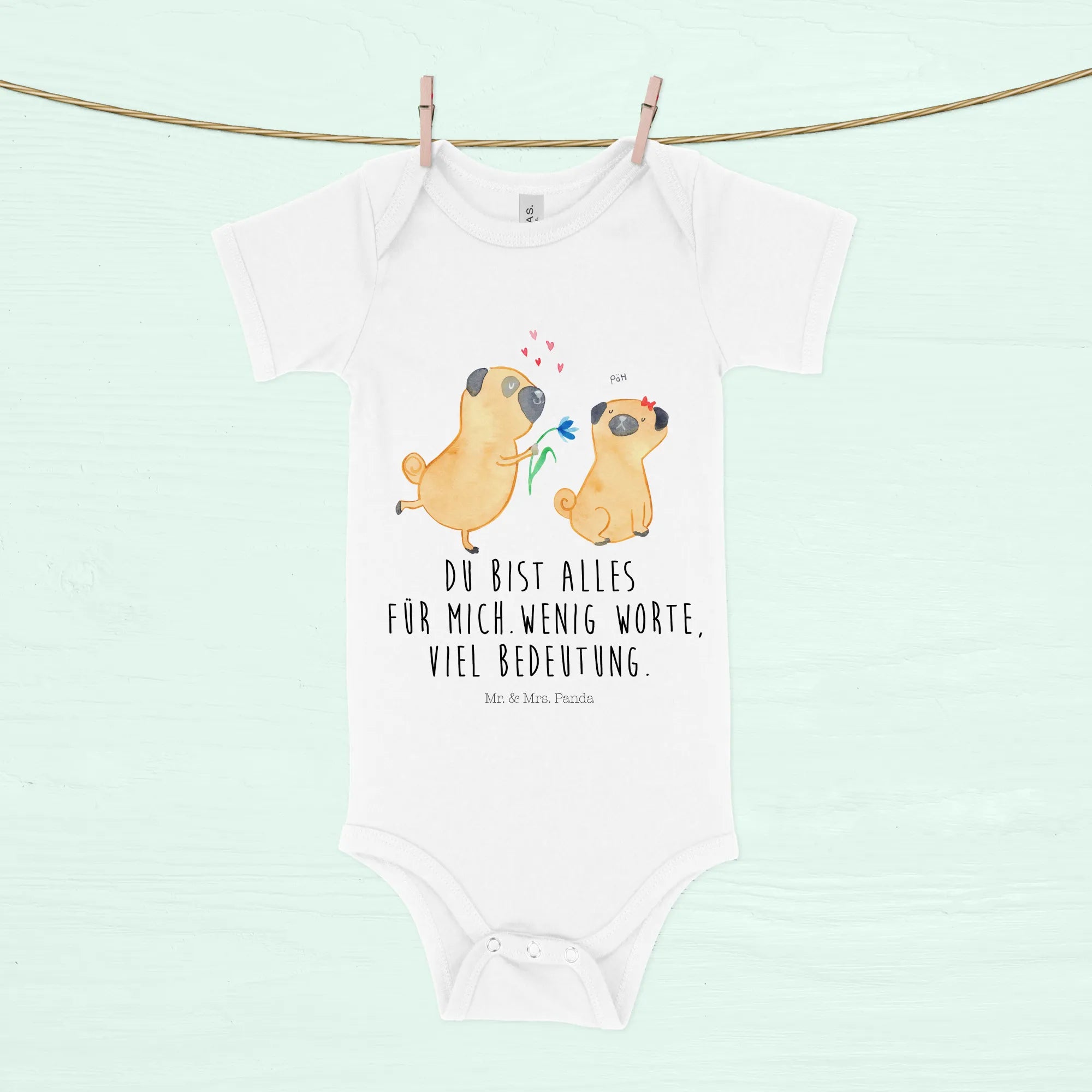 Organic Babybody „Mops verliebt“ – Hunde Kollektion von Mr. & Mrs. Panda
