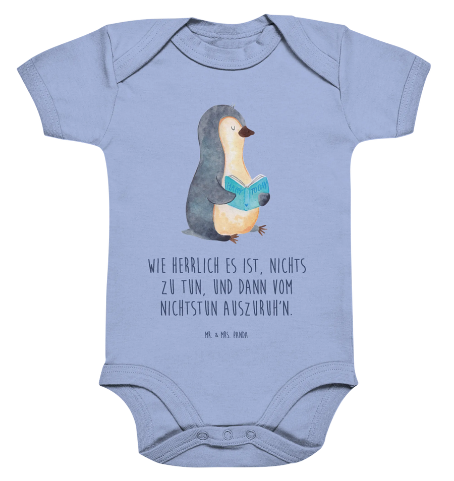Organic Baby Body Pinguin Buch babyanzug, babykleidung strampler, Babybody, overall baby, Baby-Body, Babystrampler, babykleidung body, Baby Body, Einteiler, bio babybody, baby overall, Strampler, strampelanzug, Pinguin, Freizeit, Pinguine, Bücherwurm, Nichtstun, Buch, Ferien, Lesen, Urlaub, Faulenzen