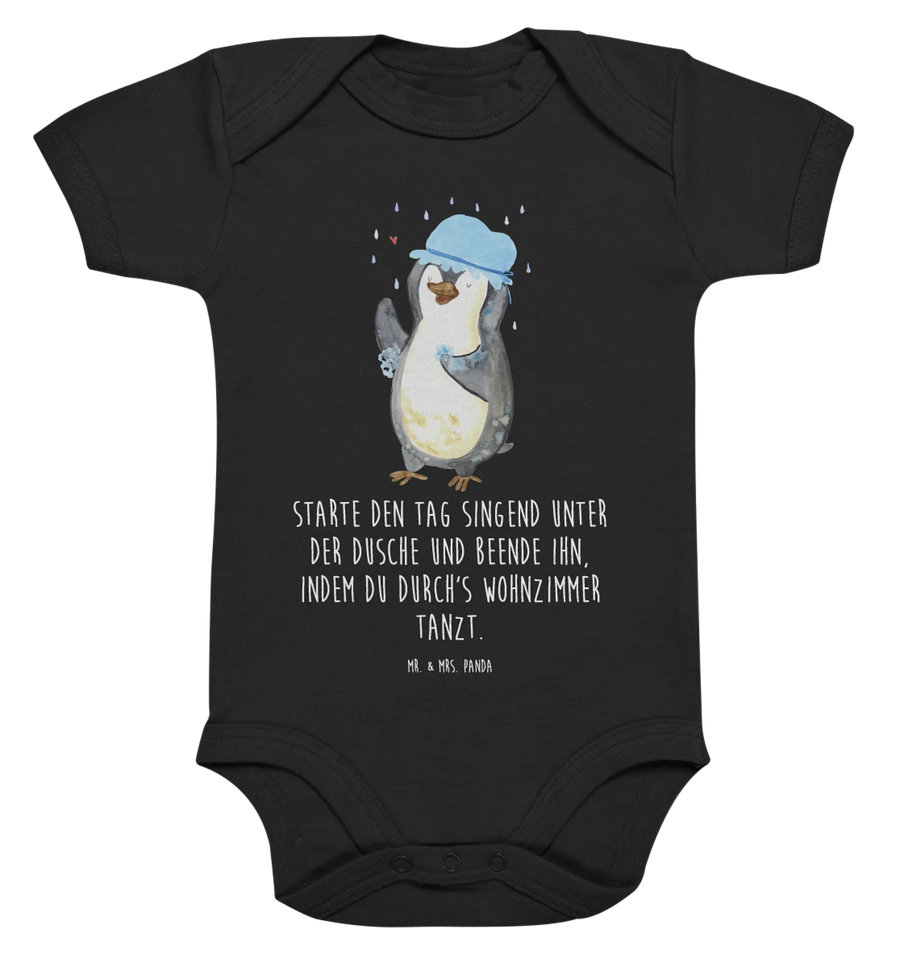 Das fröhliche Pinguin-Motiv ist nicht nur ein echter Hingucker, sondern inspiriert mit seinem Lebensmotto: 'Starte den Tag singend unter der Dusche und beende ihn, indem du durch’s Wohnzimmer tanzt.' Damit fördert der Body von Mr. & Mrs. Panda die Lebensfreude vom ersten Schritt an!