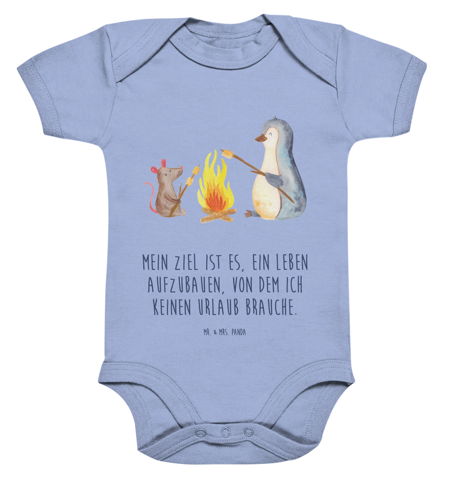 Der Organic Baby Body mit dem süßen Pinguin Lagerfeuer Motiv aus der Pinguin-Kollektion von Mr. & Mrs. Panda ist das ideale Geschenk für kleine Abenteurer und ihre Eltern! Mit liebevollen Details, wie dem fröhlichen Pinguin, der zusammen mit einer niedlichen Maus am Lagerfeuer sitzt, wird dieser Strampler schnell zum Lieblingsteil in der Baby Erstausstattung.