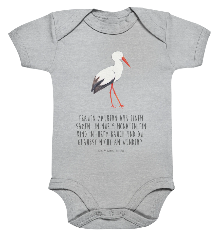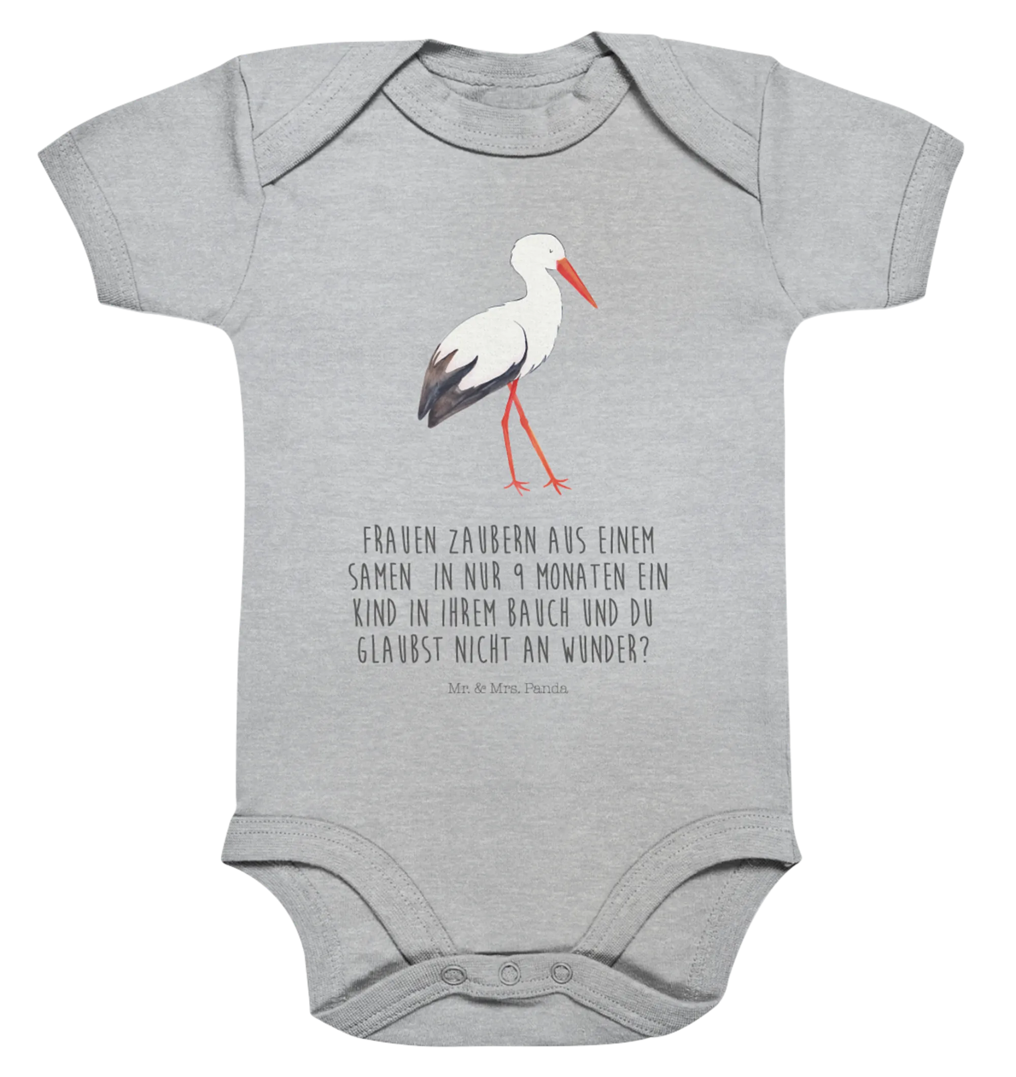 Organic Baby Body Storch - 1. - 3. Monat - mit Spruch - Heather Grey