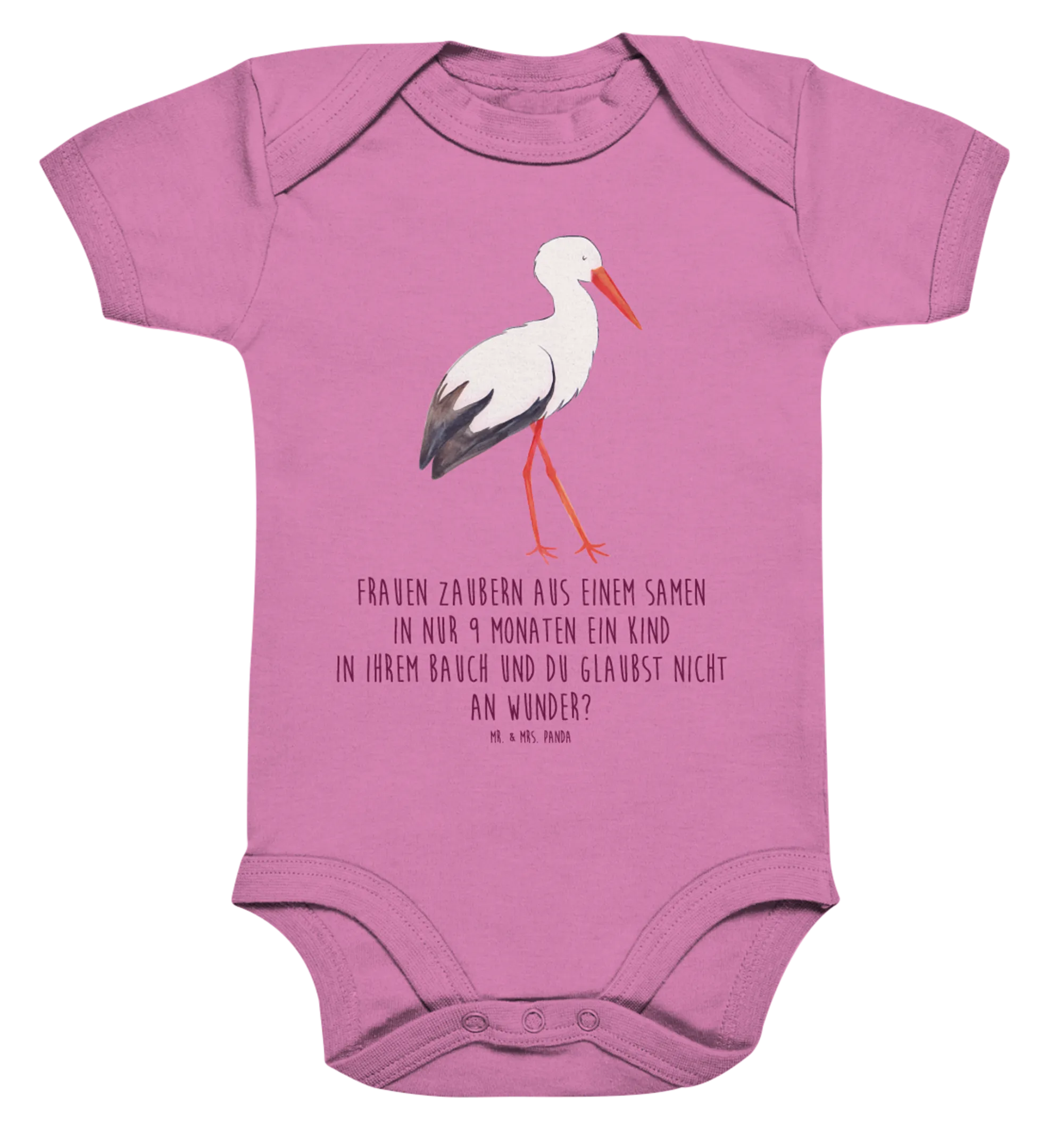 Unser liebevoll gestalteter Organic Babybody mit dem niedlichen Storch-Motiv ist das perfekte Geschenk zur Geburt, zur Babyparty oder einfach als kleine Überraschung für werdende Eltern. Der Storch trägt ein Baby in seinem Tuch und wird ergänzt durch den frechen Spruch: „Frauen zaubern aus einem Samenin nur 9 Monaten ein Kindin ihrem Bauch und du glaubst nicht an Wunder?“ Ein Herzstück voller Humor, Wärme und Zuneigung.