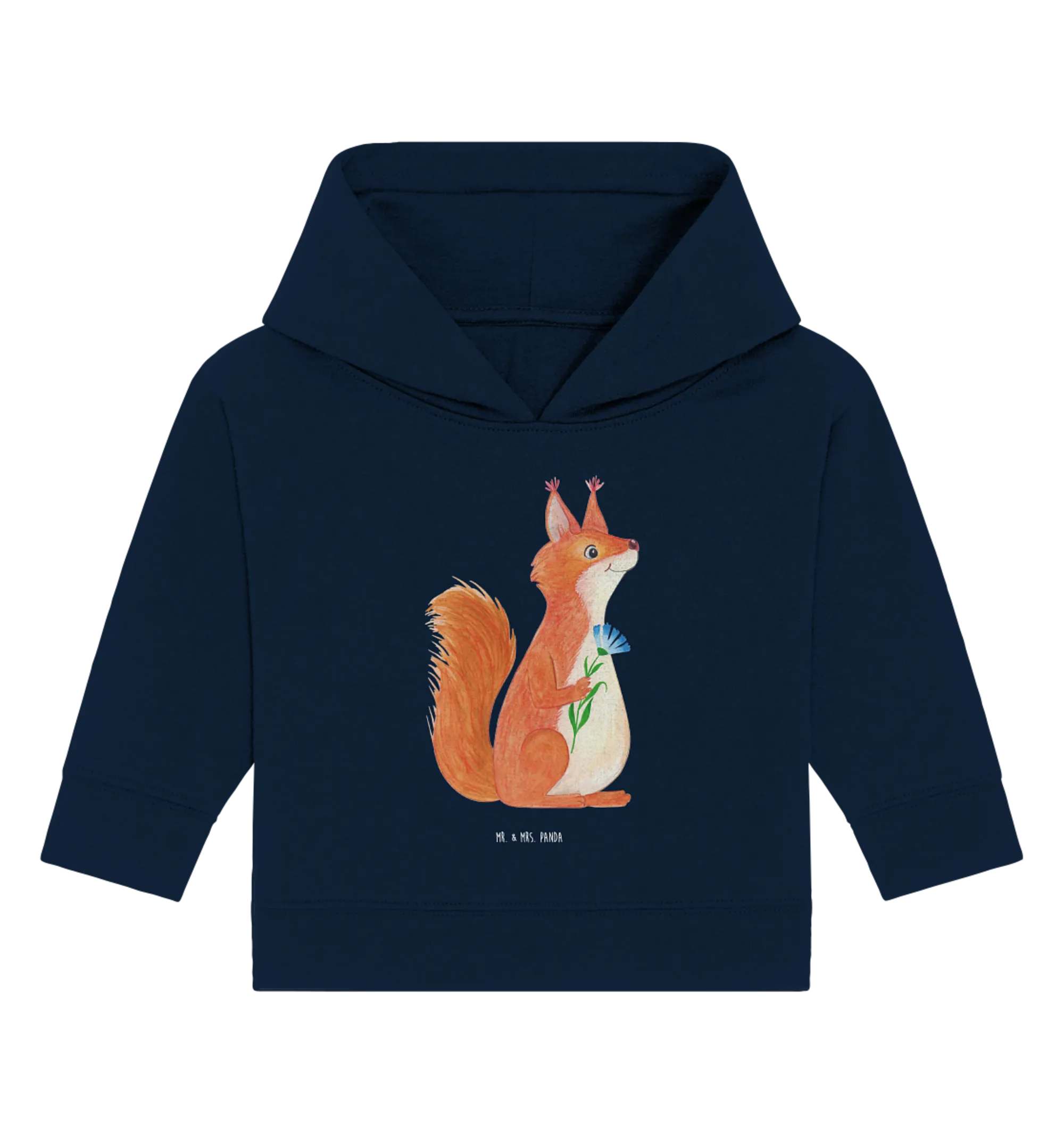Das Organic Baby Hoodie mit dem niedlichen Eichhörnchen-Blume-Motiv aus der kleinen Welt Kollektion von Mr. & Mrs. Panda ist der perfekte Begleiter für Dein kleines Liebling. Es vereint Stil und Komfort und ist aus hochwertiger, ökologischer Baumwolle gefertigt.