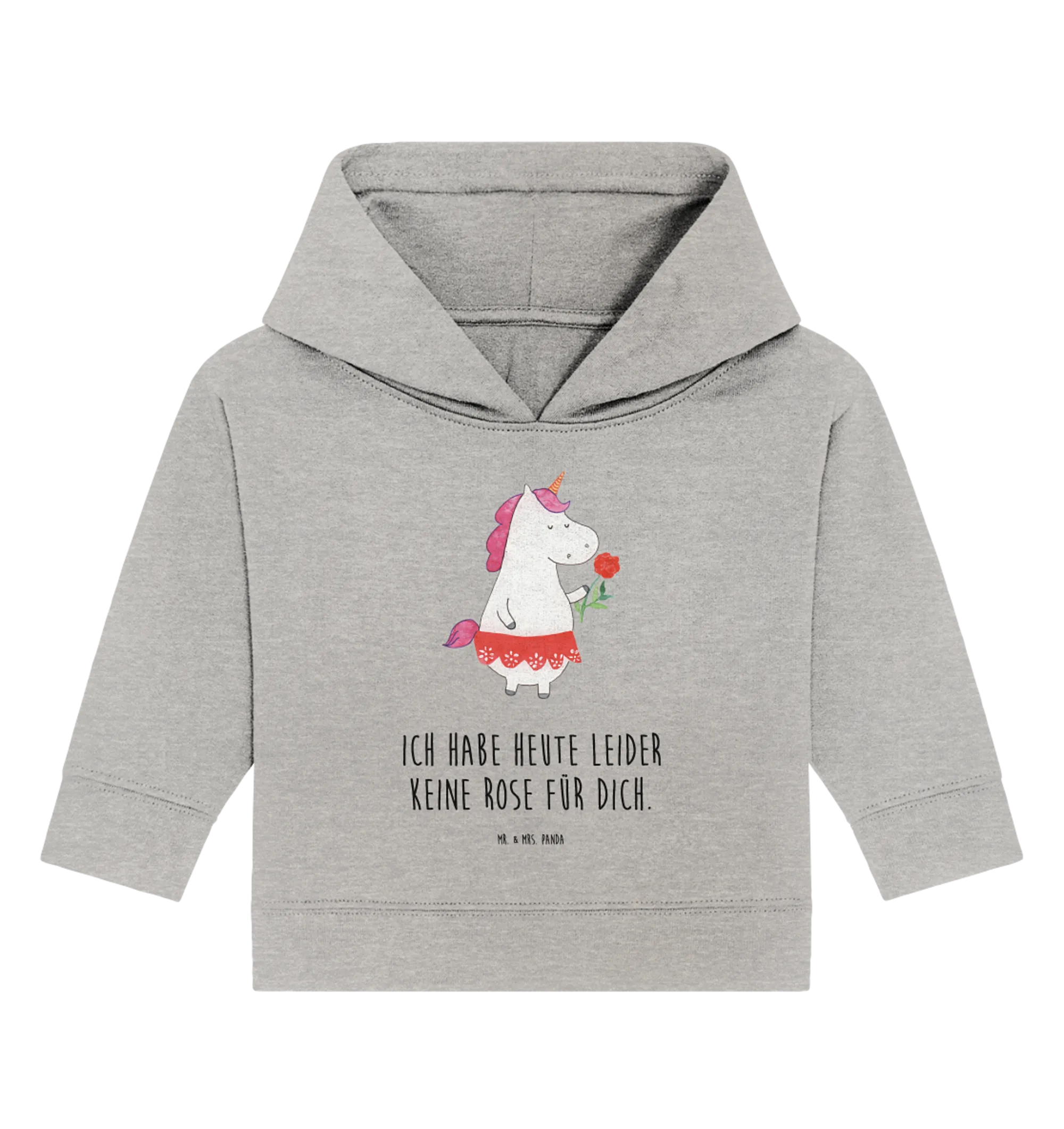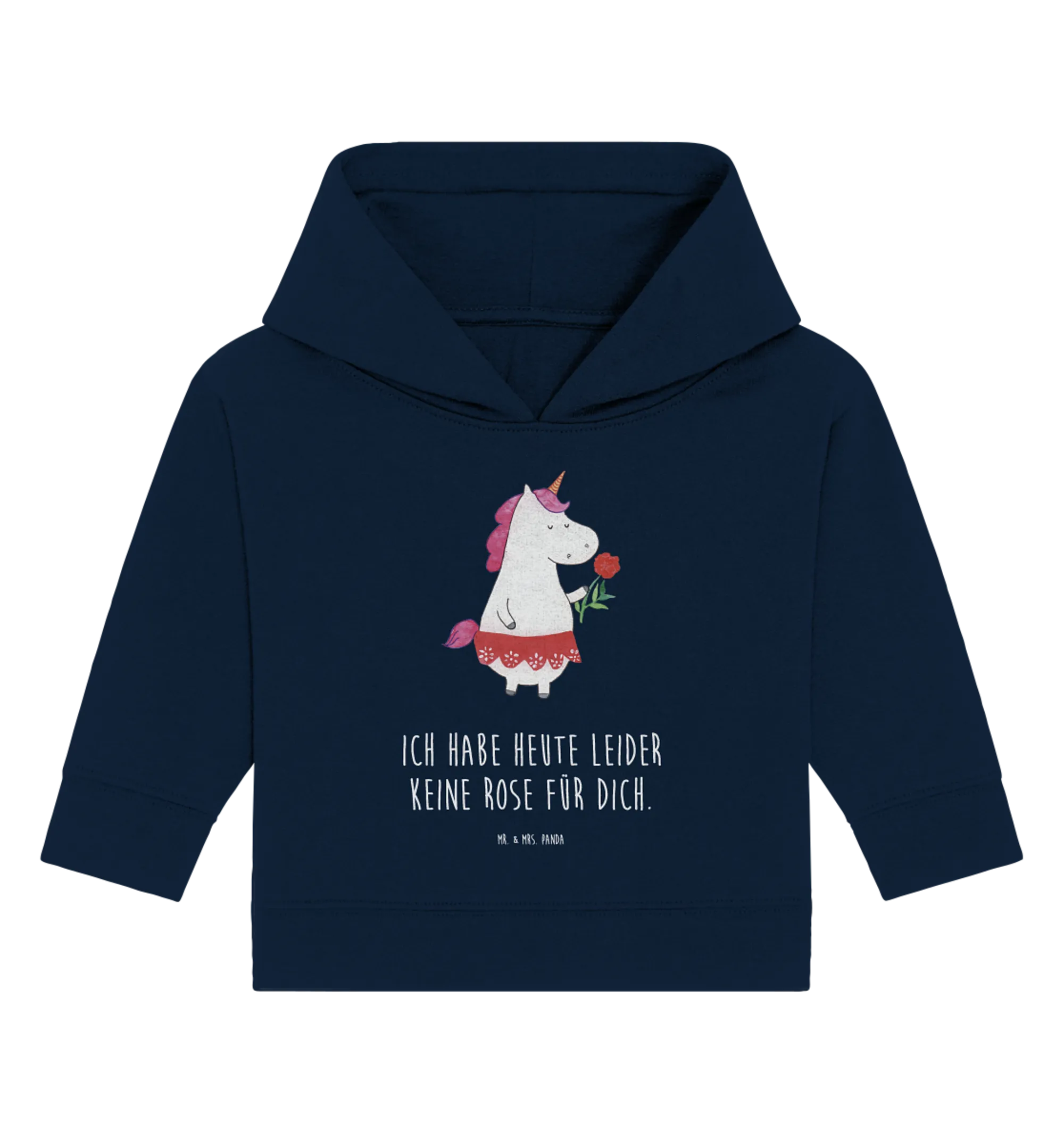 Unsere Hoodies sind nicht nur stylisch, sondern bestehen auch aus 100% Öko-Baumwolle, die sanft zur Haut deines Babys ist. Mit einem coolen, handgezeichneten Einhorn und dem süßen Spruch "Ich habe heute leider keine Rose für dich" wird der Hoodie zum wahren Hingucker.