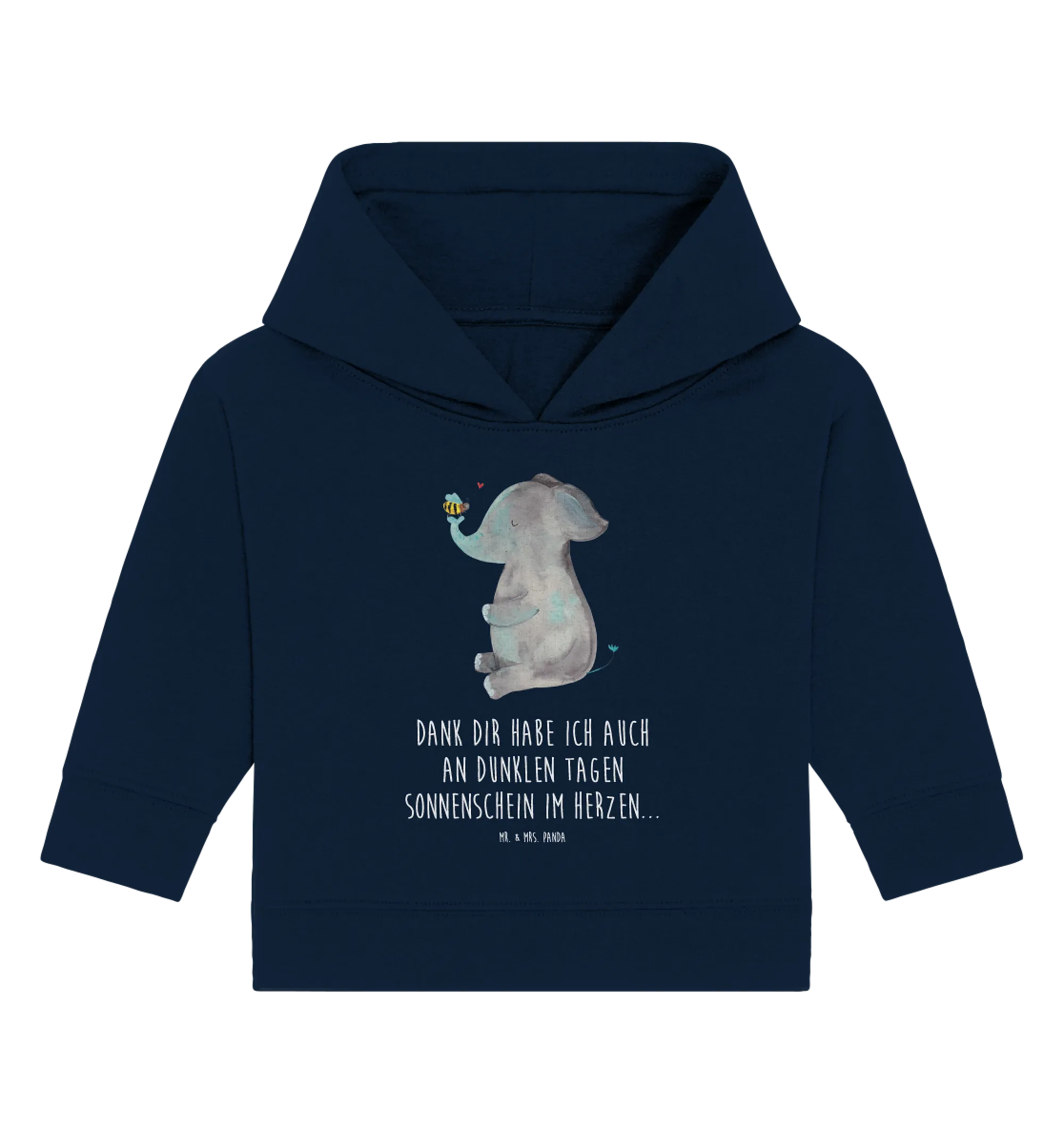 Organic Baby Hoodie Elefant Biene - 12. - 18. Monat - mit Spruch - French Navy
