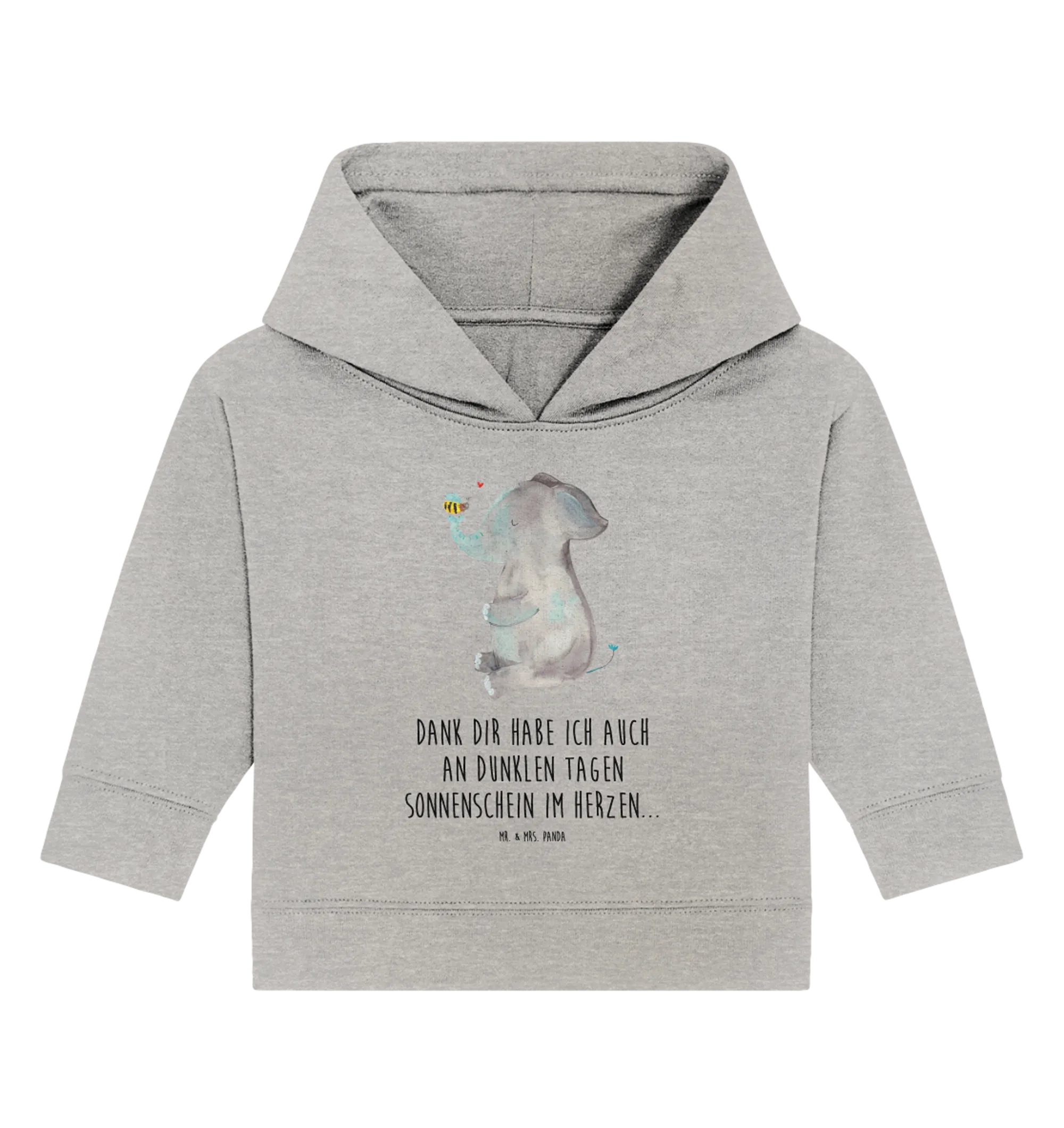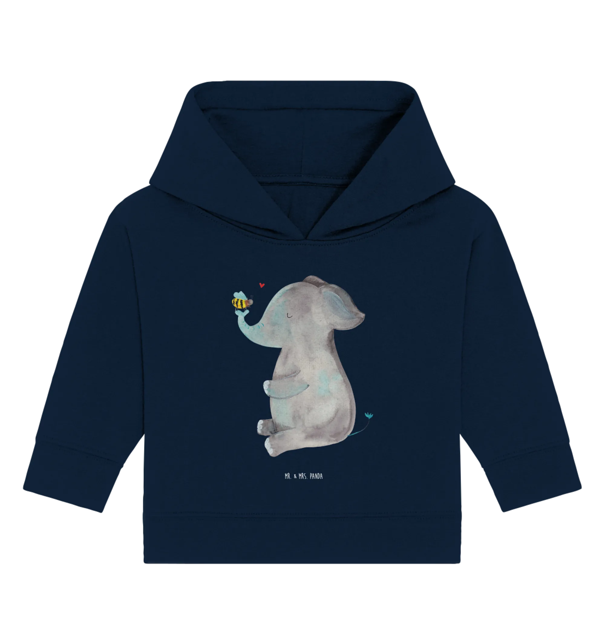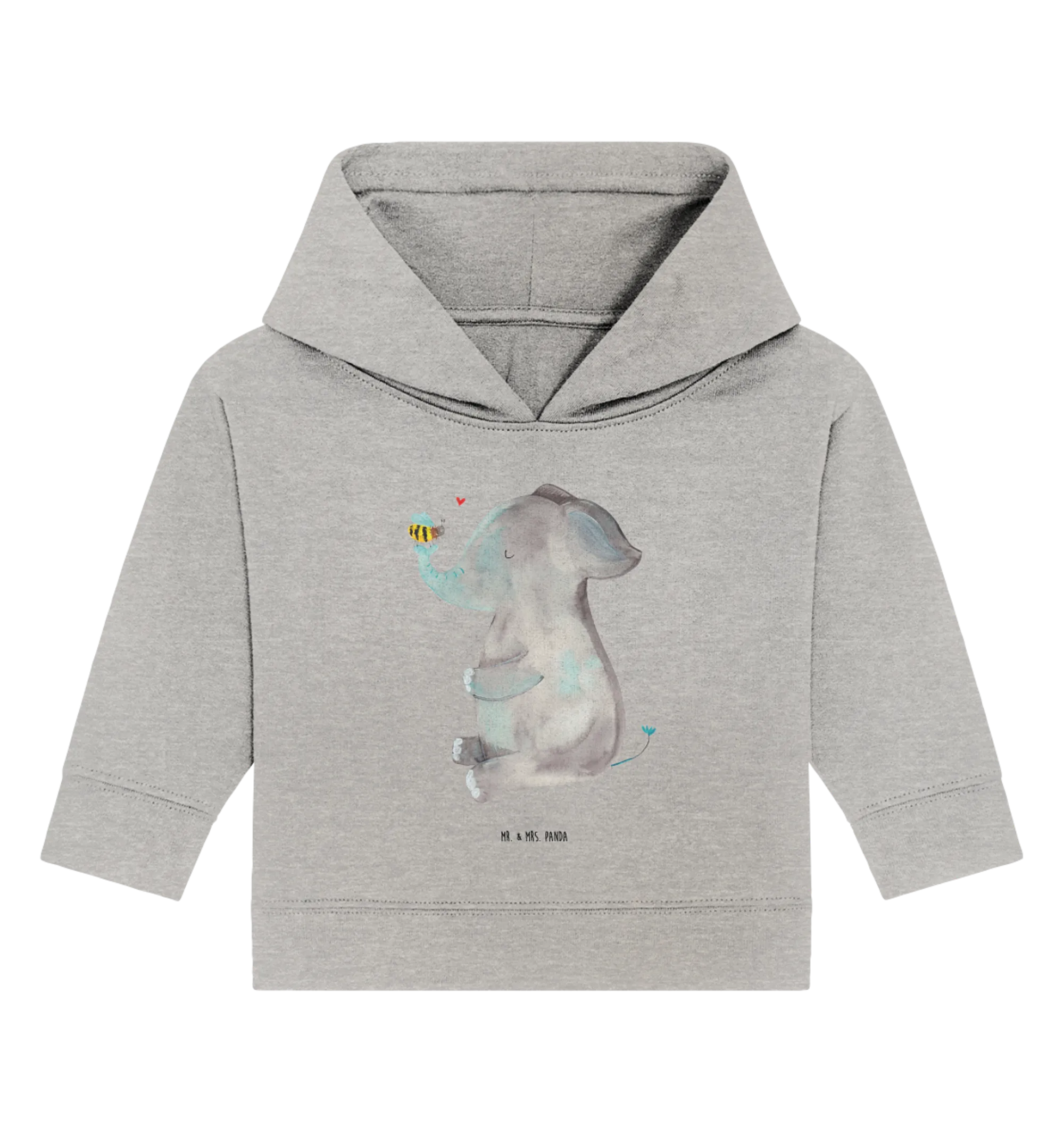 Entdecke den zauberhaften Organic Baby Hoodie mit dem süßen Motiv Elefant & Biene aus der beliebten Small World Kollektion von Mr. & Mrs. Panda! Dieser Hoodie ist nicht nur ein echter Blickfang, sondern auch eine liebevolle Botschaft für die Kleinsten.