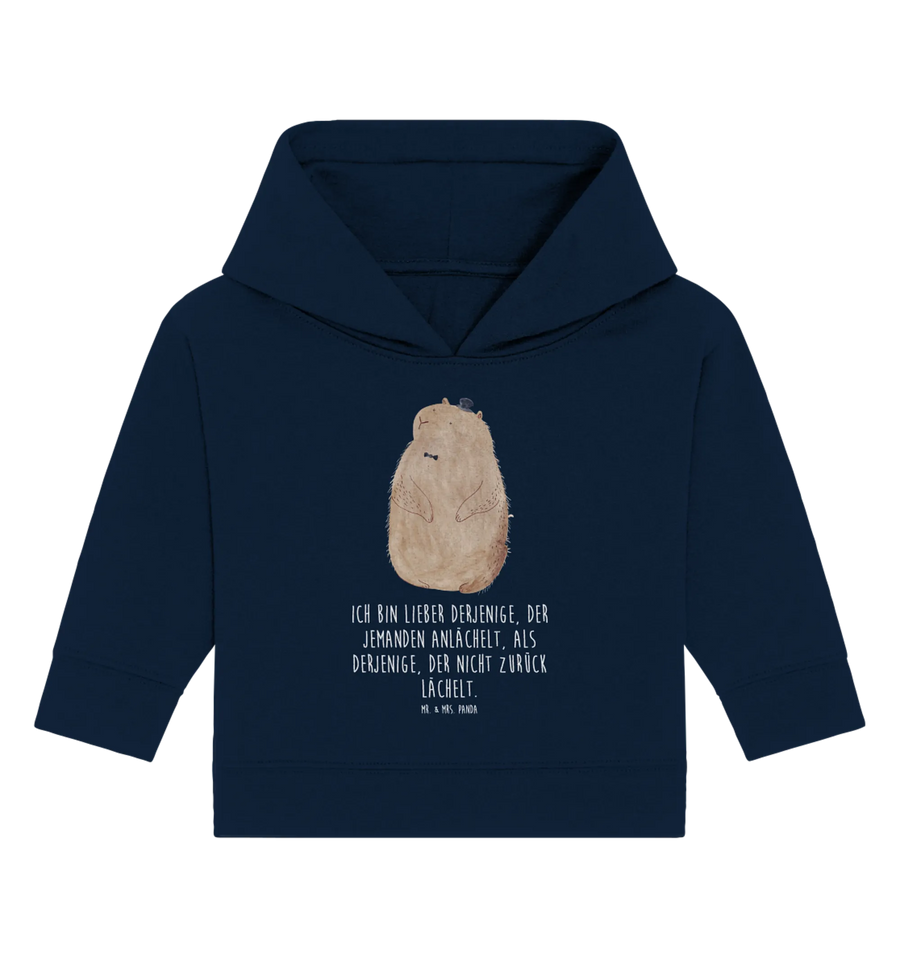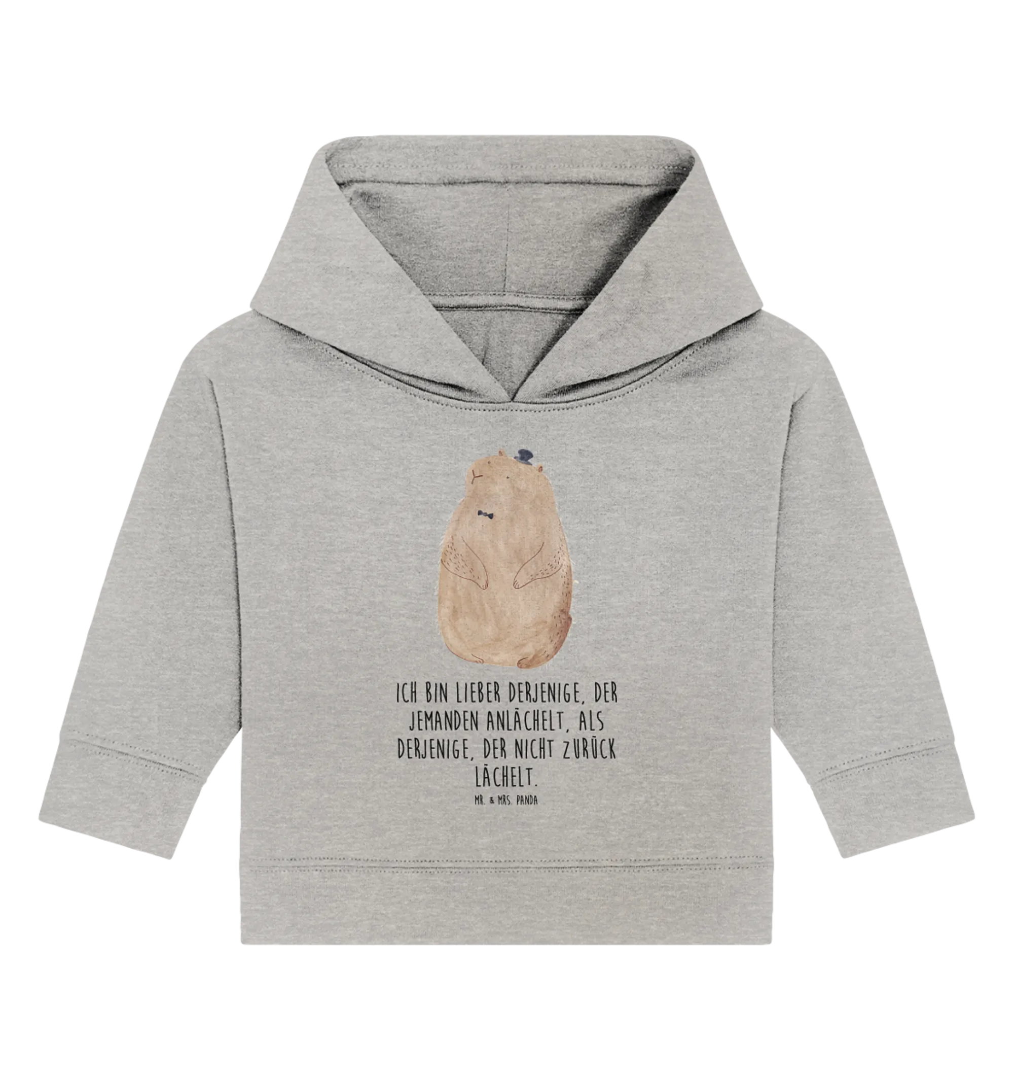 Entdecke das bezaubernde Organic Baby Hoodie mit dem süßen Murmeltier aus der Small World Kollektion von Mr. & Mrs. Panda! Dieses Kapuzenshirt ist nicht nur unglaublich weich und bequem, sondern auch ein echter Hingucker. Das fröhliche Murmeltier mit dem kleinen Zylinder zaubert jedem ein Lächeln ins Gesicht. Die Botschaft "Ich bin lieber derjenige, der jemanden anlächelt, als derjenige, der nicht zurück lächelt" vermittelt eine positive Lebenshaltung, die von klein auf gefördert werden sollte.