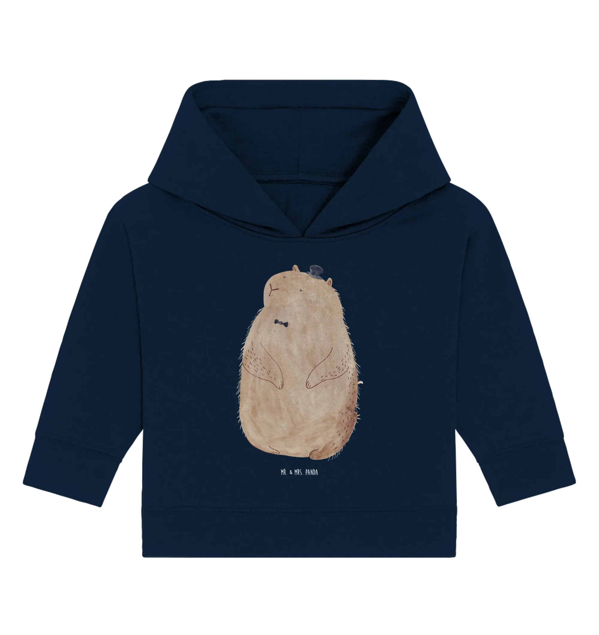 Das hübsche Murmeltier mit dem kleinen Zylinder auf dem Kopf verbreitet eine ganz besondere Stimmung und ist ein toller Blickfang für jede Babygarderobe. Überrasche werdende Eltern, Großeltern, oder Freunde mit einem Geschenk, das garantiert Freude bereitet! Ob zur Baby Shower oder einfach mal so – mit diesem Hoodie kannst du jedem ein Stück Freude schenken!