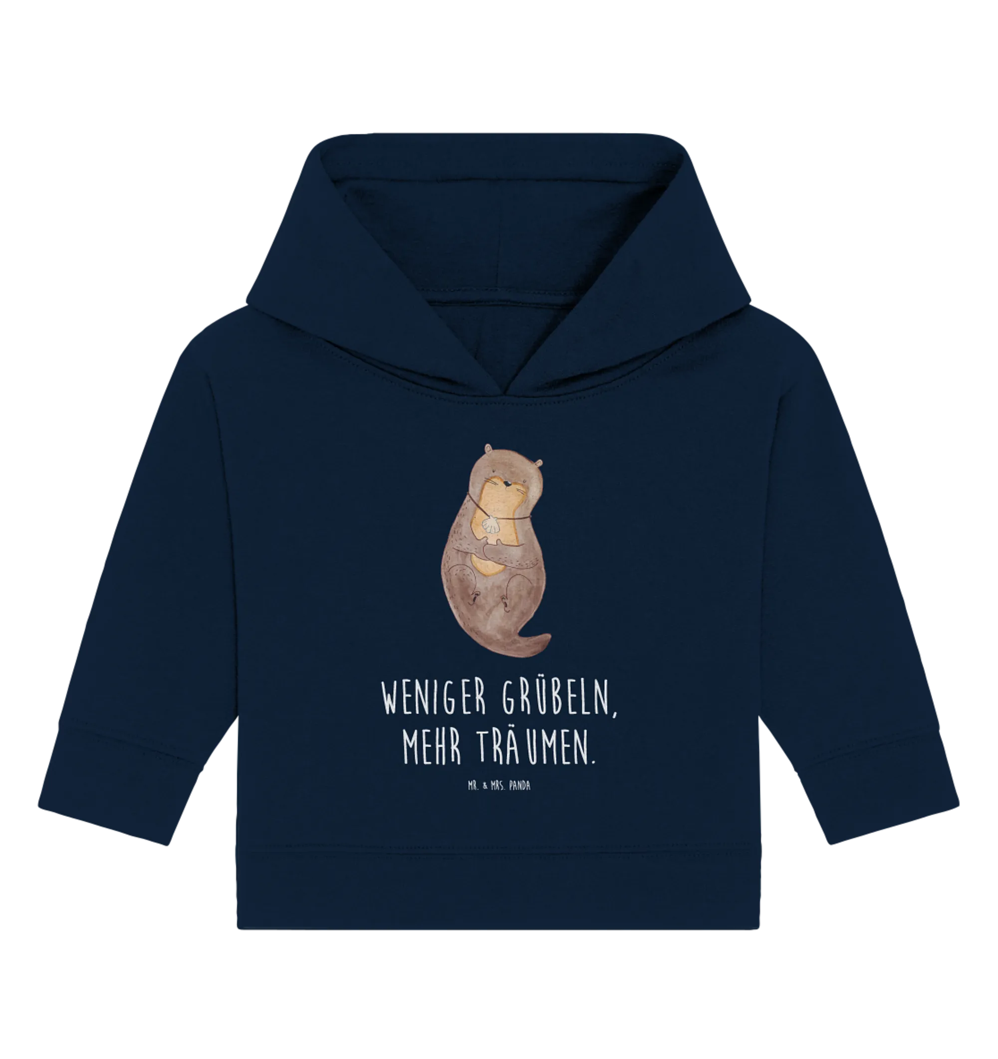 Die Otter-Kollektion von Mr. & Mrs. Panda bietet zudem die Möglichkeit, Naturliebe und maritime Begeisterung in die Garderobe deines Babys zu bringen. Das schlichte und dennoch ausdrucksstarke Design ist nicht nur schick, sondern auch ein Ausdruck der positiven Lebenseinstellung, die wir unseren kleinen Schatz von Beginn an mitgeben wollen. Mit dem Slogan "Weniger grübeln, mehr träumen." ist dieses Hoodie auch eine tolle Inspirationsquelle für eine entspannte Erziehung.