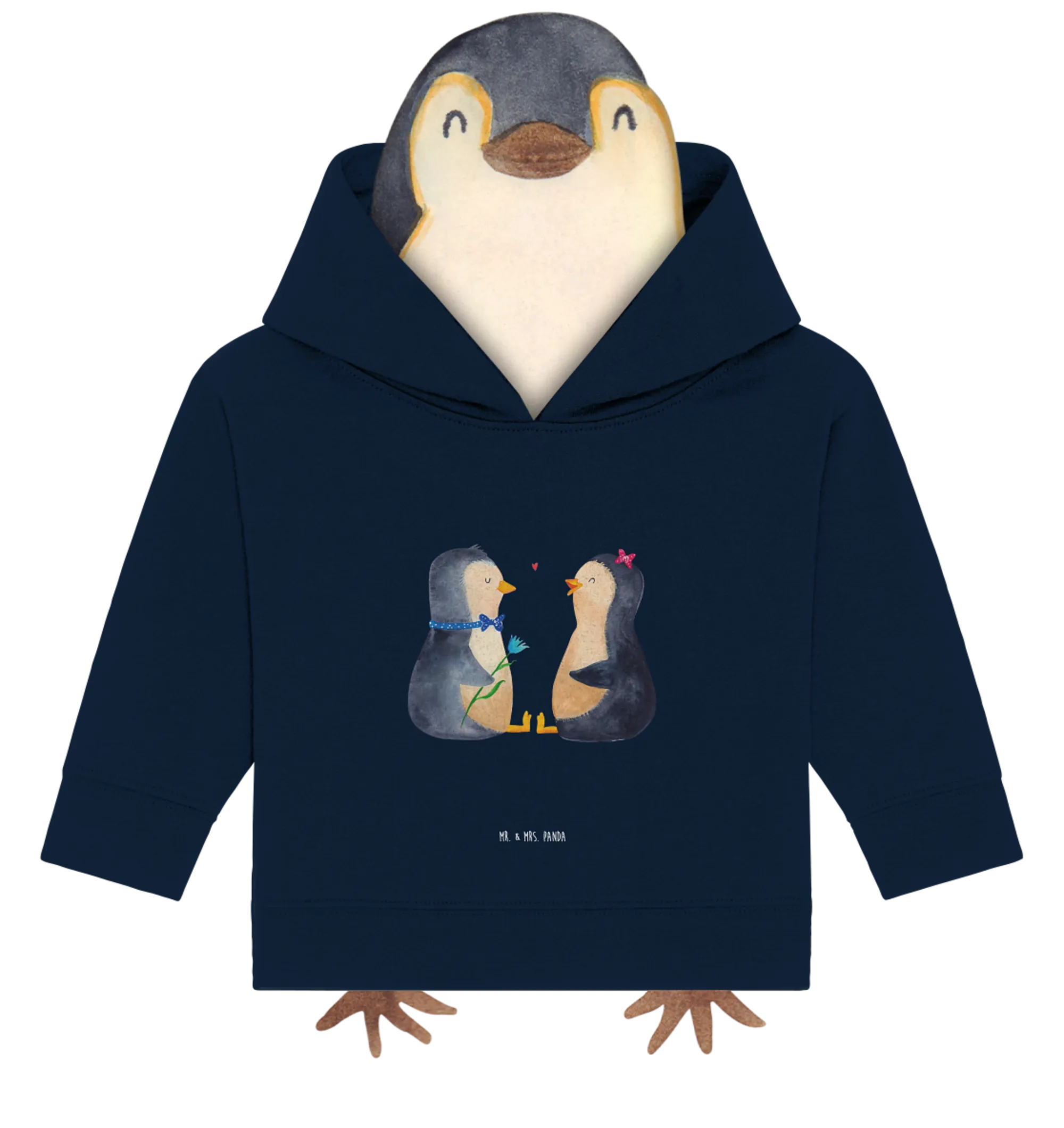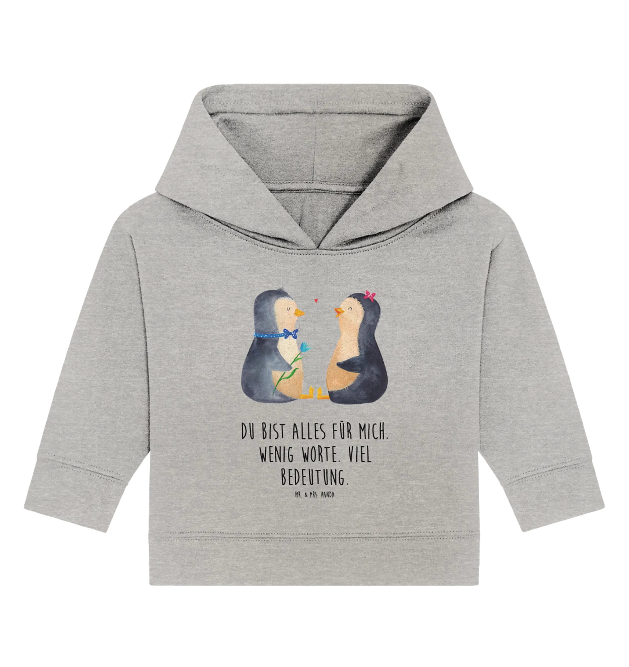 Das "Pinguin Pärchen" von Mr. & Mrs. Panda ist ein absoluter Hingucker. Diese beiden kleinen Pinguine sitzen sich gegenüber und schauen sich verliebt an – einfach herzallerliebst! Egal, ob für einen Baby-Geburtstag, zur Verlobung oder als Hochzeitsgeschenk, dieser Hoodie ist ein echter Liebesbeweis und eine süße Erinnerung an die großen und kleinen Momente des Lebens.