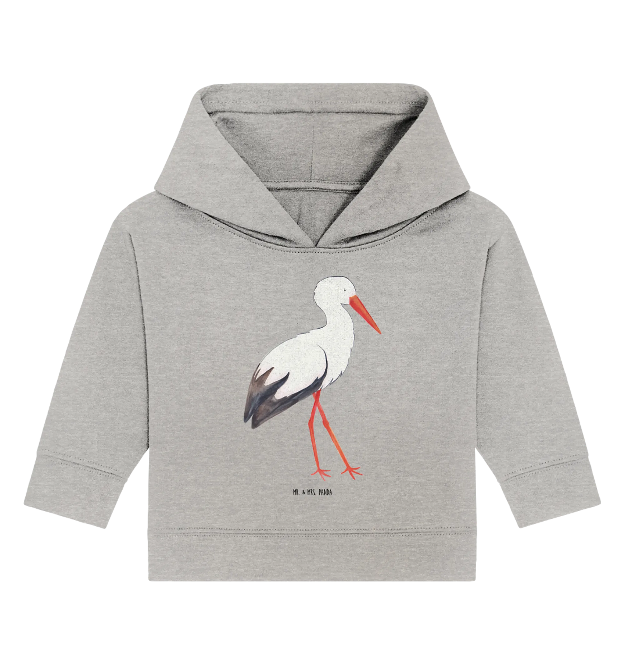 Hol Dir diesen ganz besonderen Organic Baby Hoodie mit dem Storch-Motiv und erfreue damit einen kleinen Sonnenschein und seine Eltern!