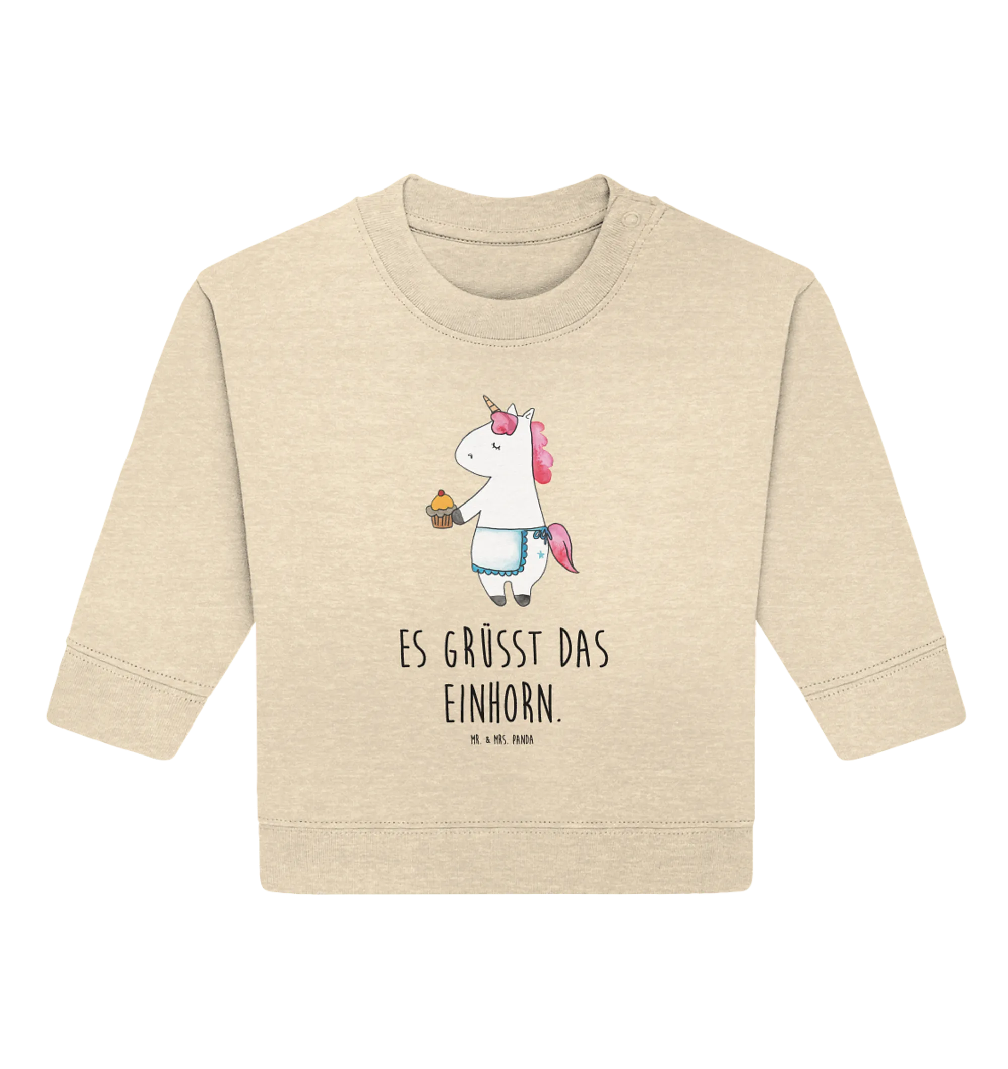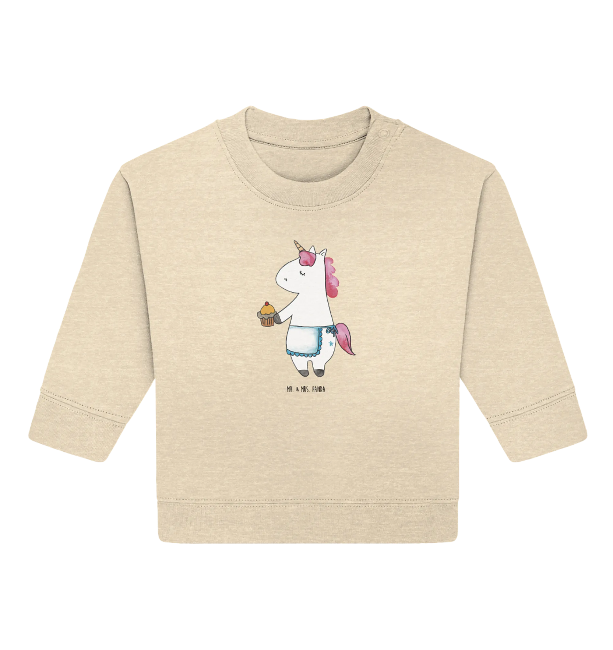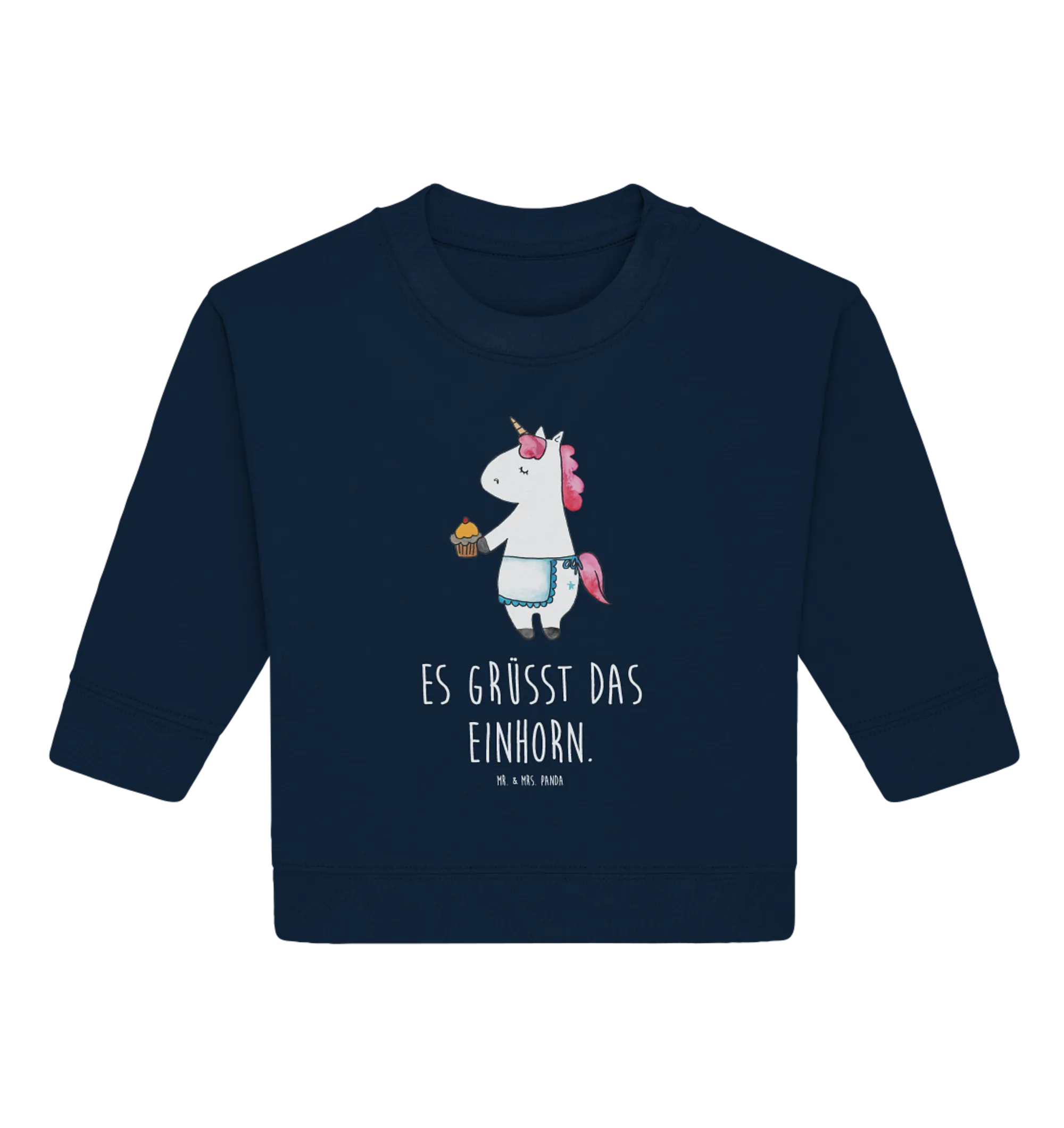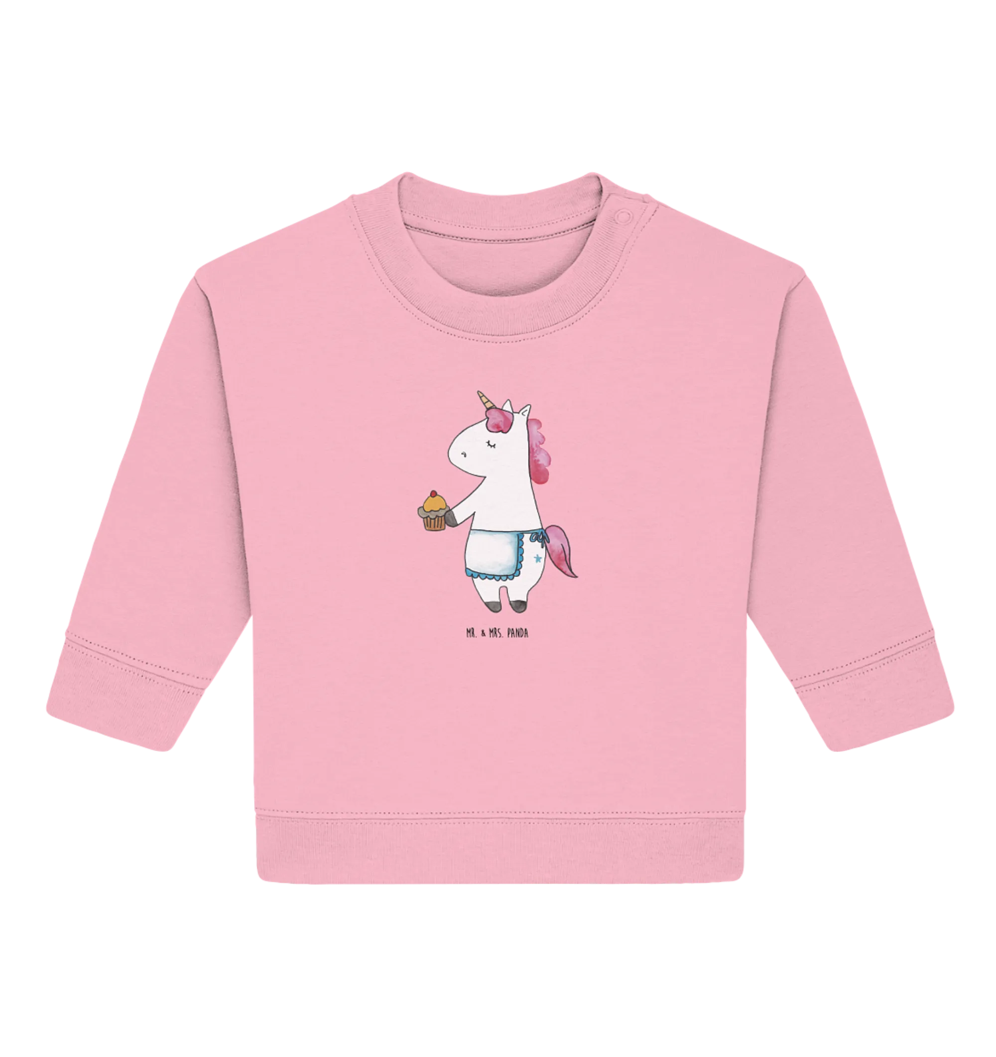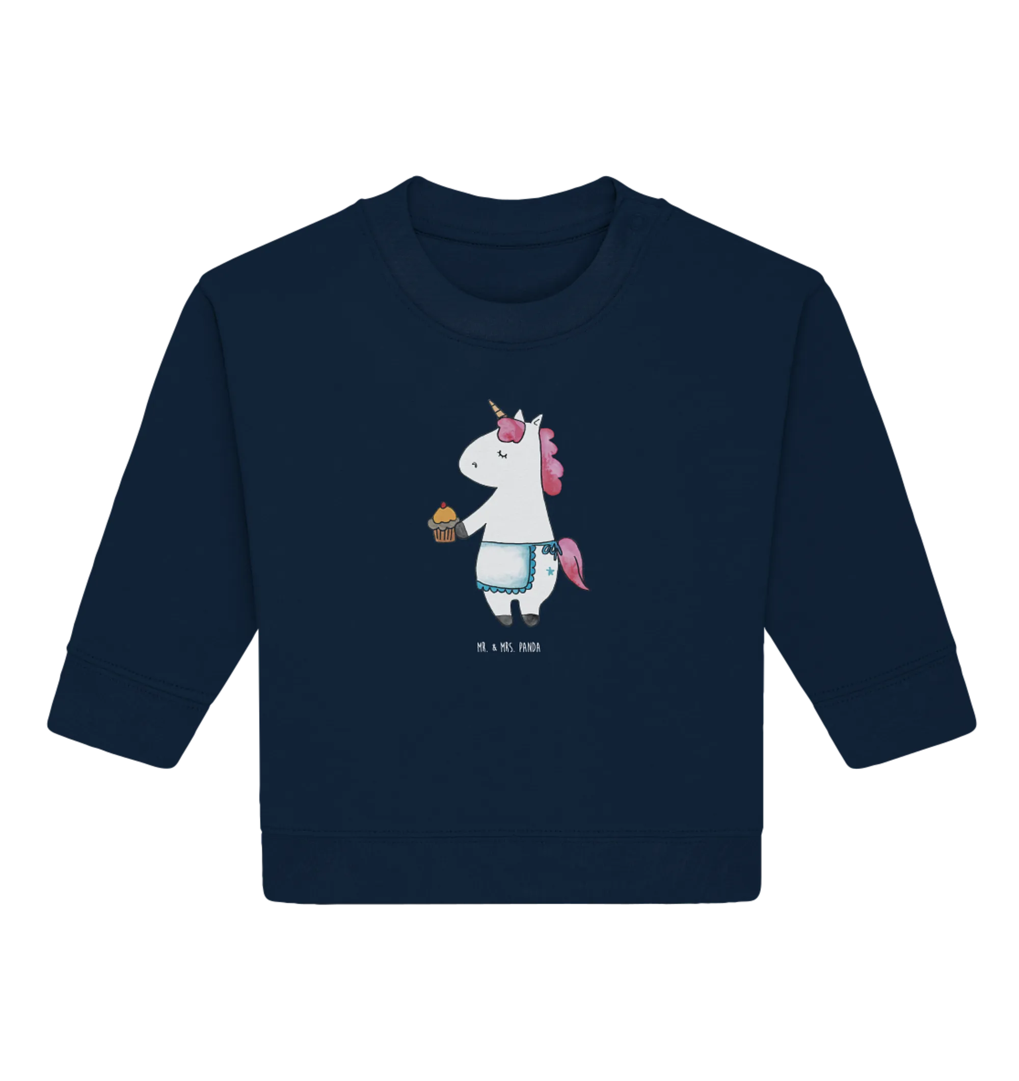Gestaltet mit einem niedlichen Einhorn, das stolz einen selbst gebackenen Muffin präsentiert, macht er jeden Tag zum Besonderen. Wer liebt nicht die süßen Grüße von einem Einhorn? Dieser Baby Pullover stammt aus unserer beliebten Einhorn-Kollektion, die mit viel Hingabe von Mrs. Panda handgezeichnet wurde.
