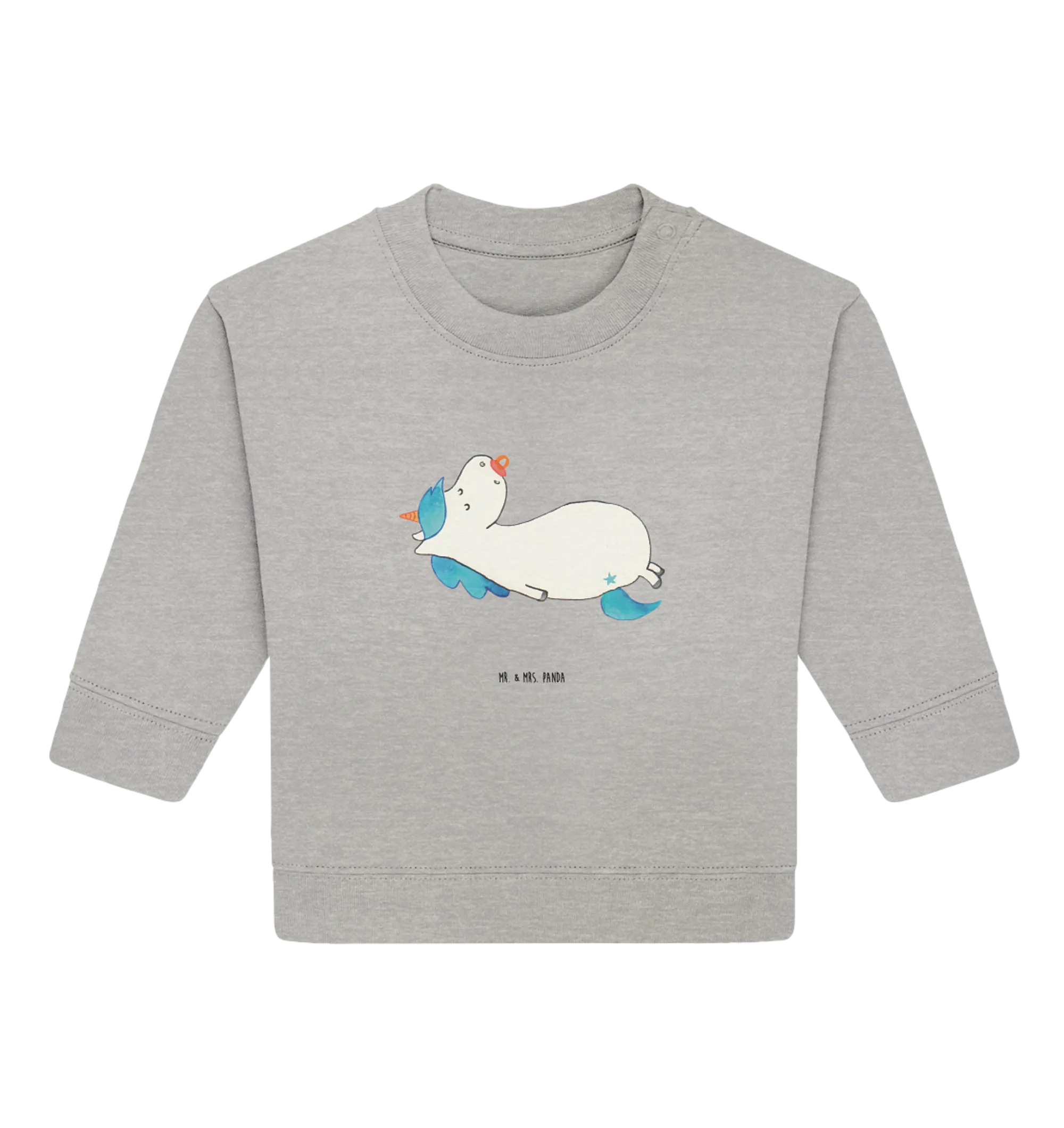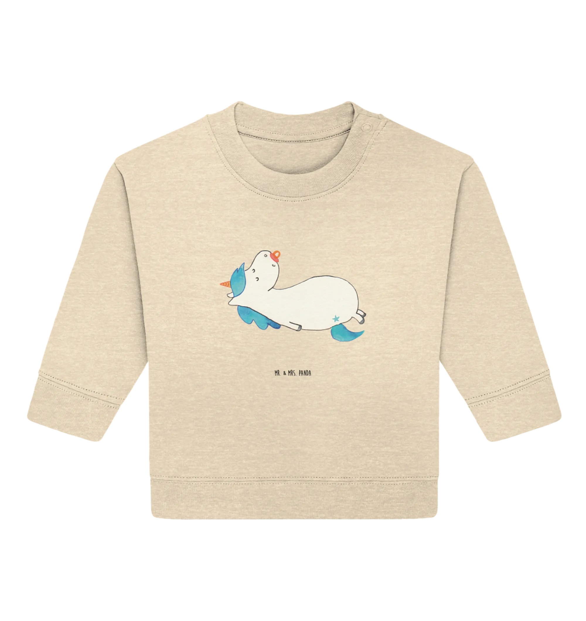 Das wunderschöne Motiv eines schlummernden Einhorns mit Schnuller sieht einfach traumhaft aus und zaubert jedem Betrachter ein Lächeln ins Gesicht. Die handgezeichneten Designs von Mr. & Mrs. Panda sind voller Liebe und machen diesen Pullover zu einem ganz besonderen Kleidungsstück, das zu den ersten Lieblingsstücken Deines Babys werden kann.
