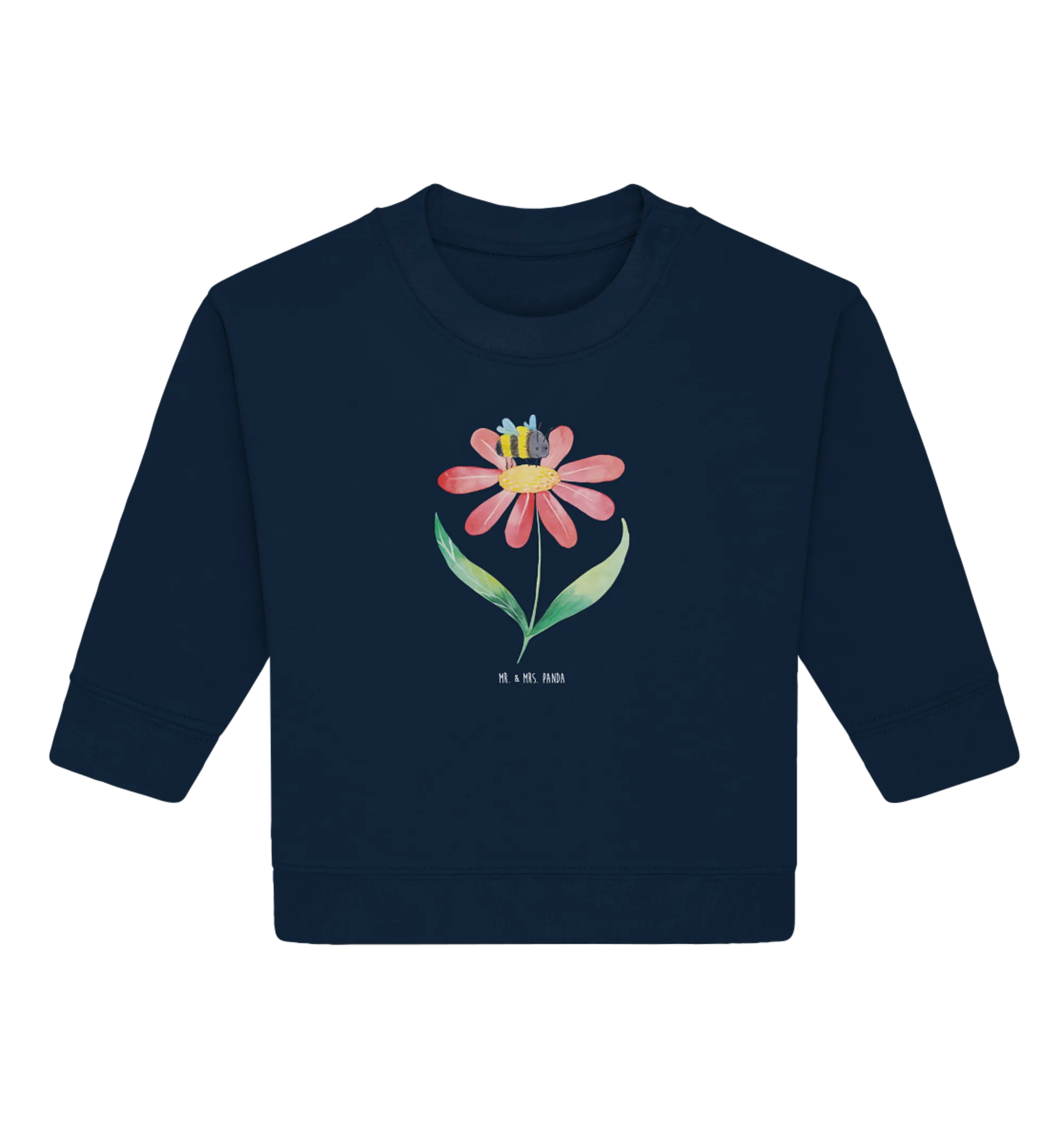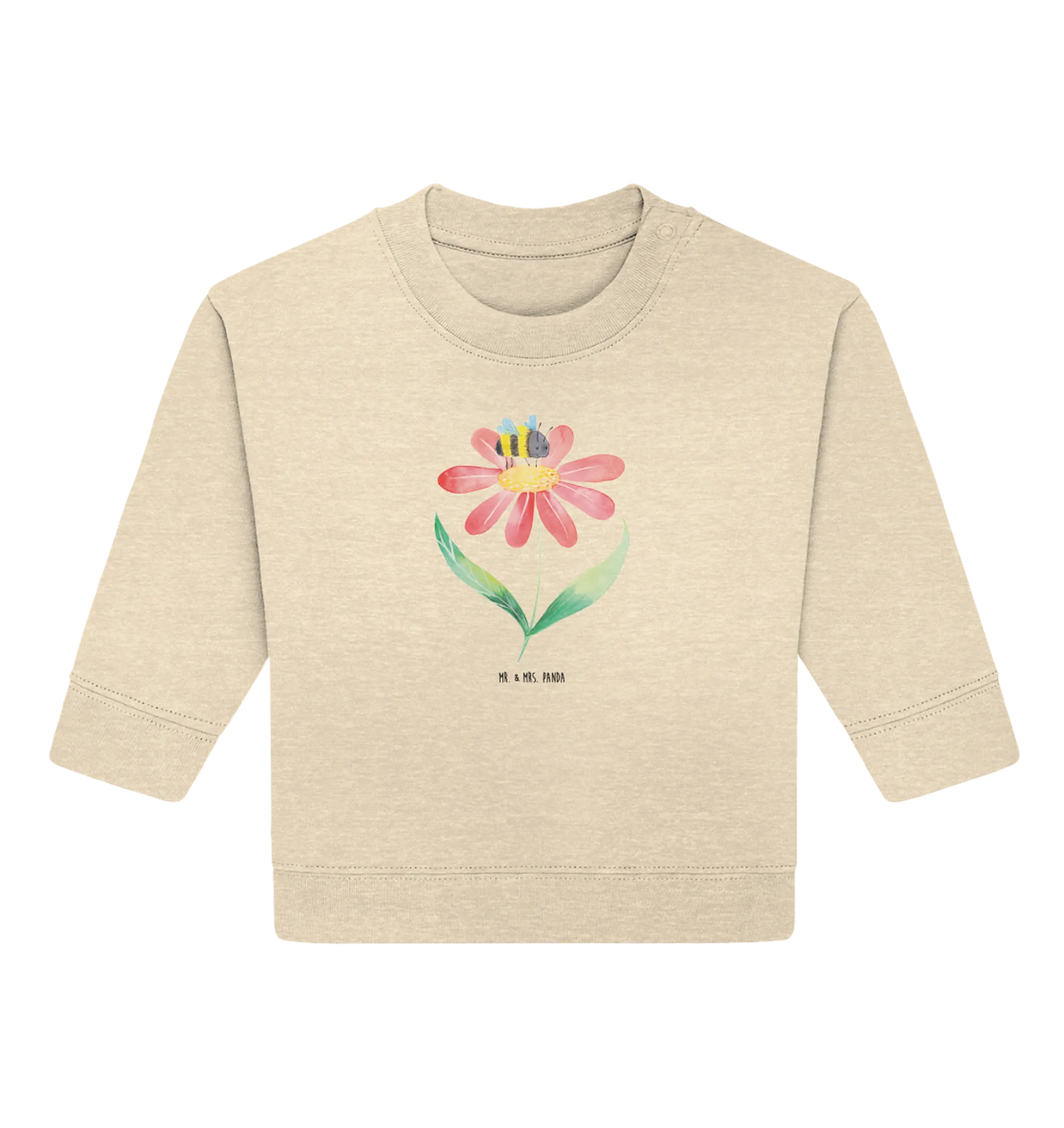 Der Organic Baby Pullover "Hummel Blume" von Mr. & Mrs. Panda ist das perfekte Geschenk für kleine Naturliebhaber und ihre Eltern. Dieses zauberhafte Sweatshirt verbindet Komfort und Stil mit einem tollen, handgezeichneten Motiv einer süßen Hummel auf einer bunten Blume.