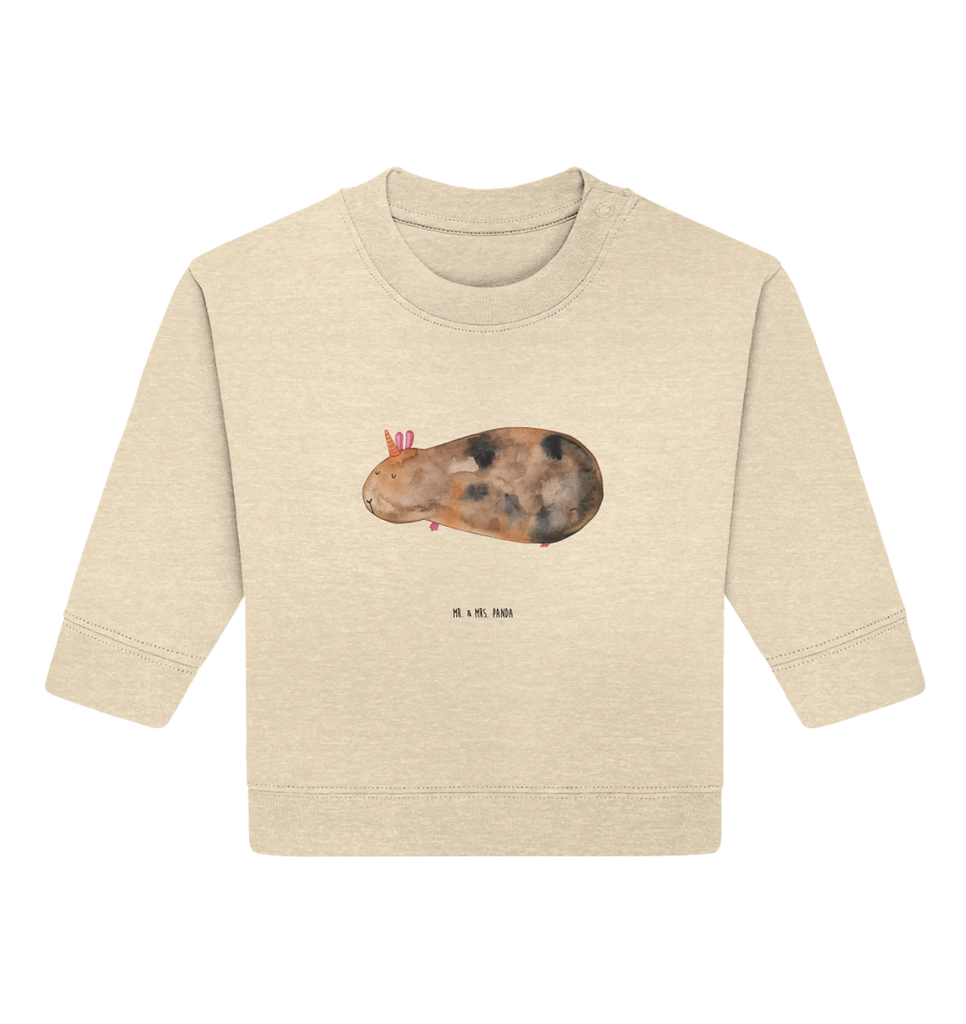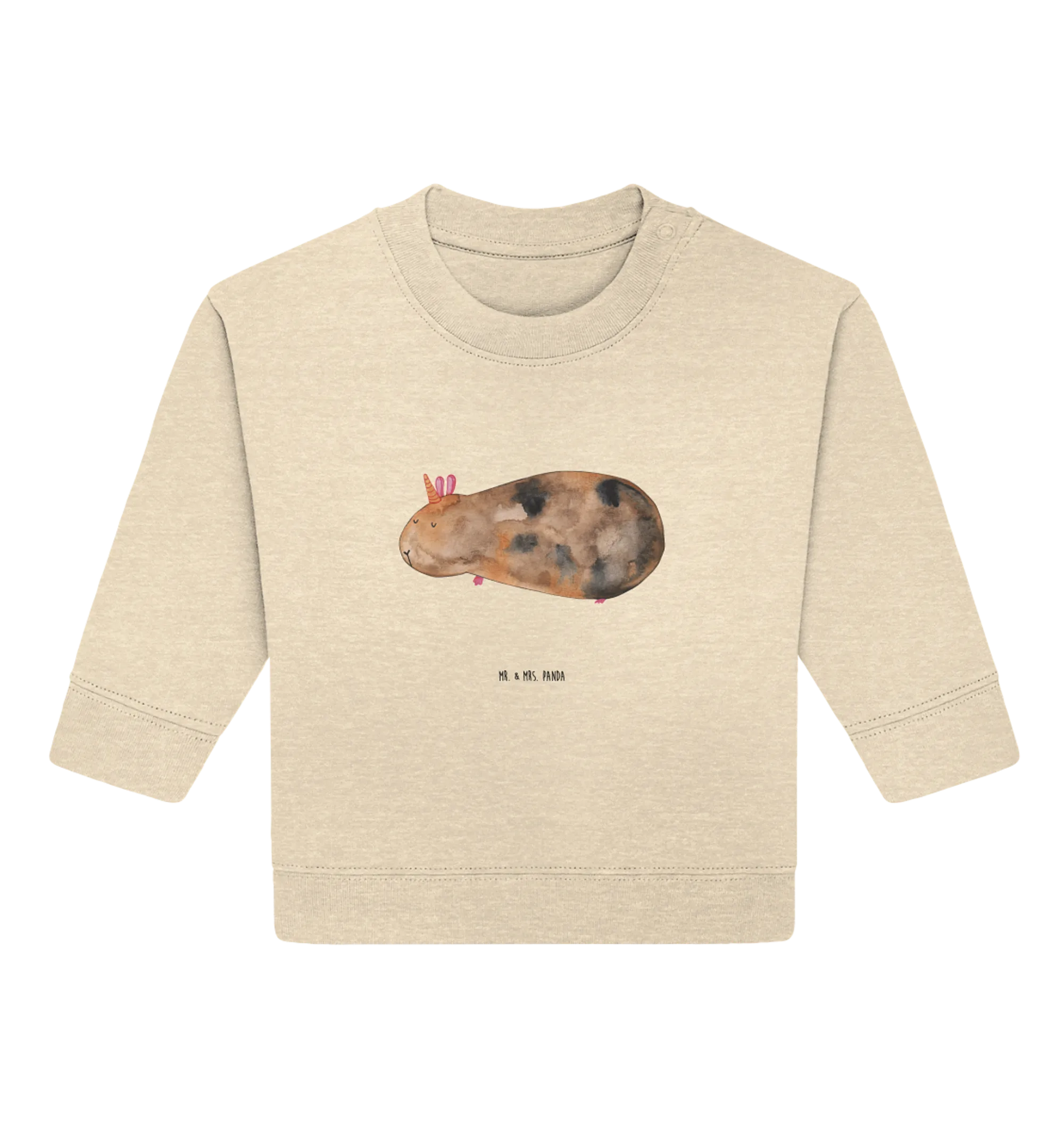 Entdecke den zauberhaften Organic Baby Pullover mit dem süßen Meerhörnchen-Motiv aus der besonderen Einhorn-Kollektion von Mr. & Mrs. Panda. Dieser Pullover ist nicht nur ein wahrer Hingucker, sondern auch besonders kuschelig und bequem, perfekt für die zarten Babys, die unseren Alltag so wunderbar bereichern. Hergestellt aus 100% Öko-Baumwolle, fühlt sich der Pullover angenehm weich auf der Haut an und sorgt für ein rundum gutes Tragegefühl. Das entzückende Motiv zeigt ein kleines Meerschweinchen mit einem Horn auf der Stirn – das Meerhörnchen! Es bringt ein Lächeln auf die Gesichter aller, die diesen Pullover sehen. Die liebevoll handgezeichneten Designs von Mrs. Panda verwandeln jedes Outfit in ein kleines Kunstwerk.