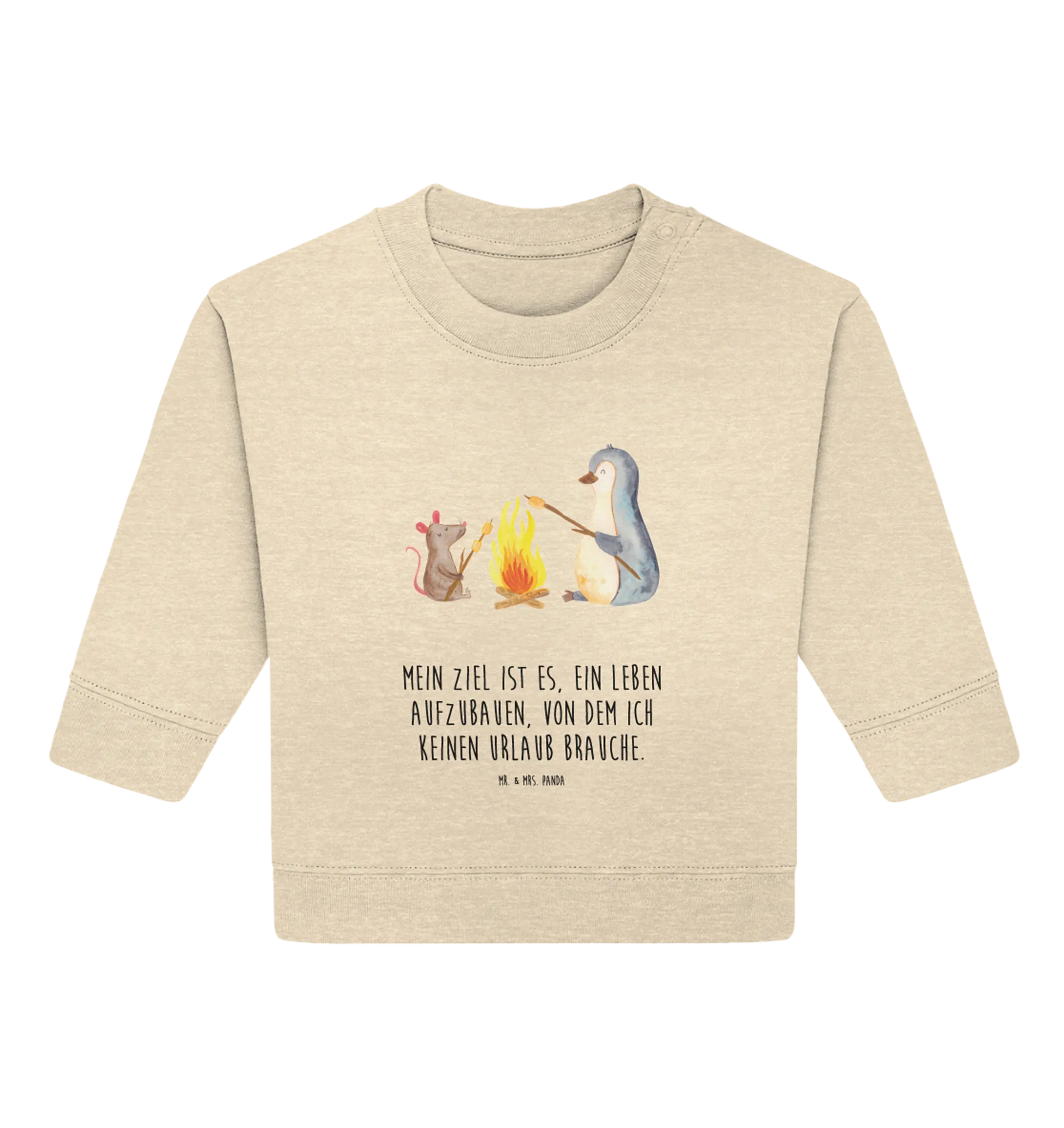 Entdecke den bezaubernden Organic Baby Pullover mit dem einzigartigen Motiv "Pinguin Lagerfeuer" aus der Pinguin-Kollektion von Mr. & Mrs. Panda!