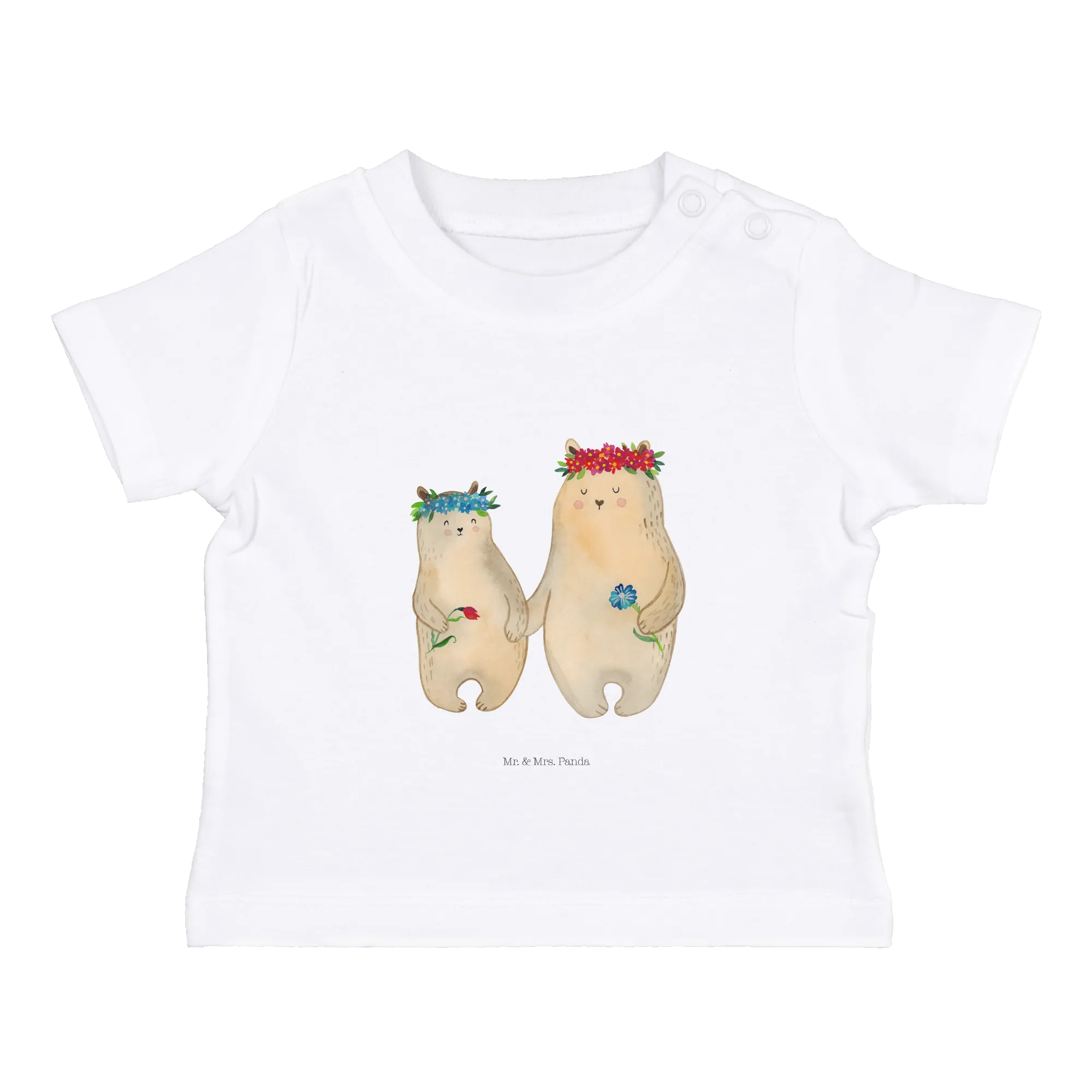 Das Organic Baby Shirt mit dem bezaubernden Motiv "Bären mit Blumenkranz" aus der Familien Kollektion von Mr. & Mrs. Panda ist das perfekte Geschenk für kleine Erdenbürger und ihre Mamas. Mit viel Liebe und Kreativität von Mrs. Panda handgezeichnet, bereitet dieses Shirt nicht nur Freude, sondern ist auch ein wunderschönes Modeaccessoire. Es zeigt zwei niedliche Bären, die mit einem Blumenkranz geschmückt sind und liebevoll miteinander kommunizieren – ein perfektes Symbol für die besondere Bindung zwischen Mutter und Kind.