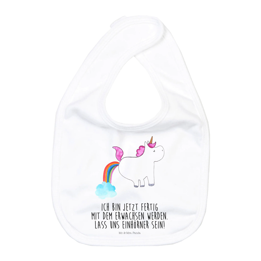 Ein weiteres Highlight ist das fröhliche Design: Das pupsende Einhorn, das über einen Regenbogen springt und dabei glitzerndes Konfetti verstreut, macht das Lätzchen zu einem absoluten Hingucker in jeder Babyausstattung. Egal ob das kleine Wesen gerade sein erstes Breichen entdeckt oder noch in der Stillzeit ist – das Organic Babylätzchen schützt zuverlässig und sieht dabei einfach fantastisch aus!