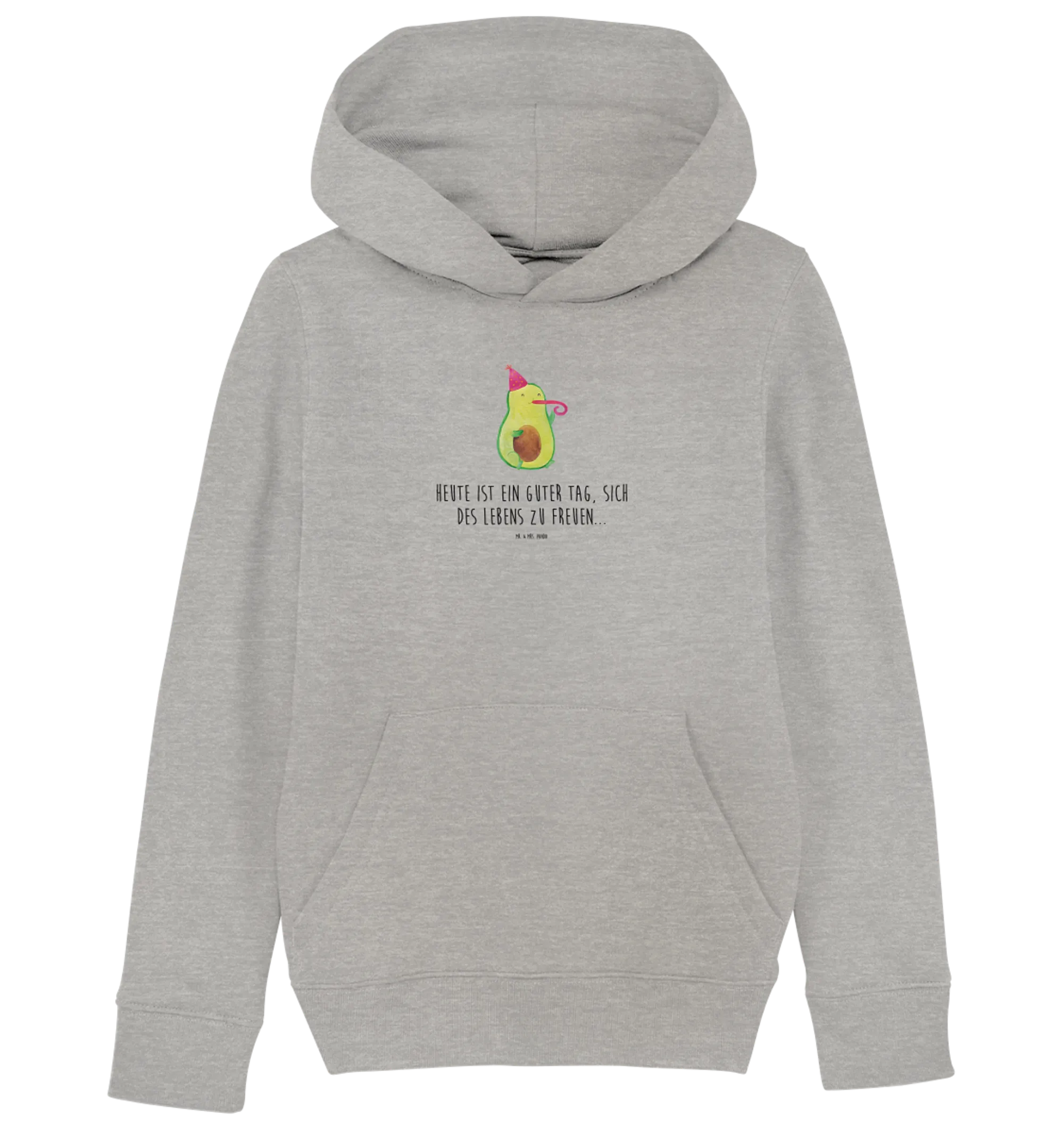 Der Organic Kinder Hoodie mit dem Avocado Partyhupe-Motiv vereint Stil, Komfort und Nachhaltigkeit und ist damit das ideale Geschenk für jeden Anlass!
