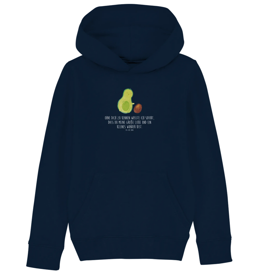 Der Organic Kinder Hoodie "Avocado rollt Kern" aus der bezaubernden Avocado Kollektion von Mr. & Mrs. Panda ist das perfekte Geschenk für kleine Abenteurer und Genussliebhaber!