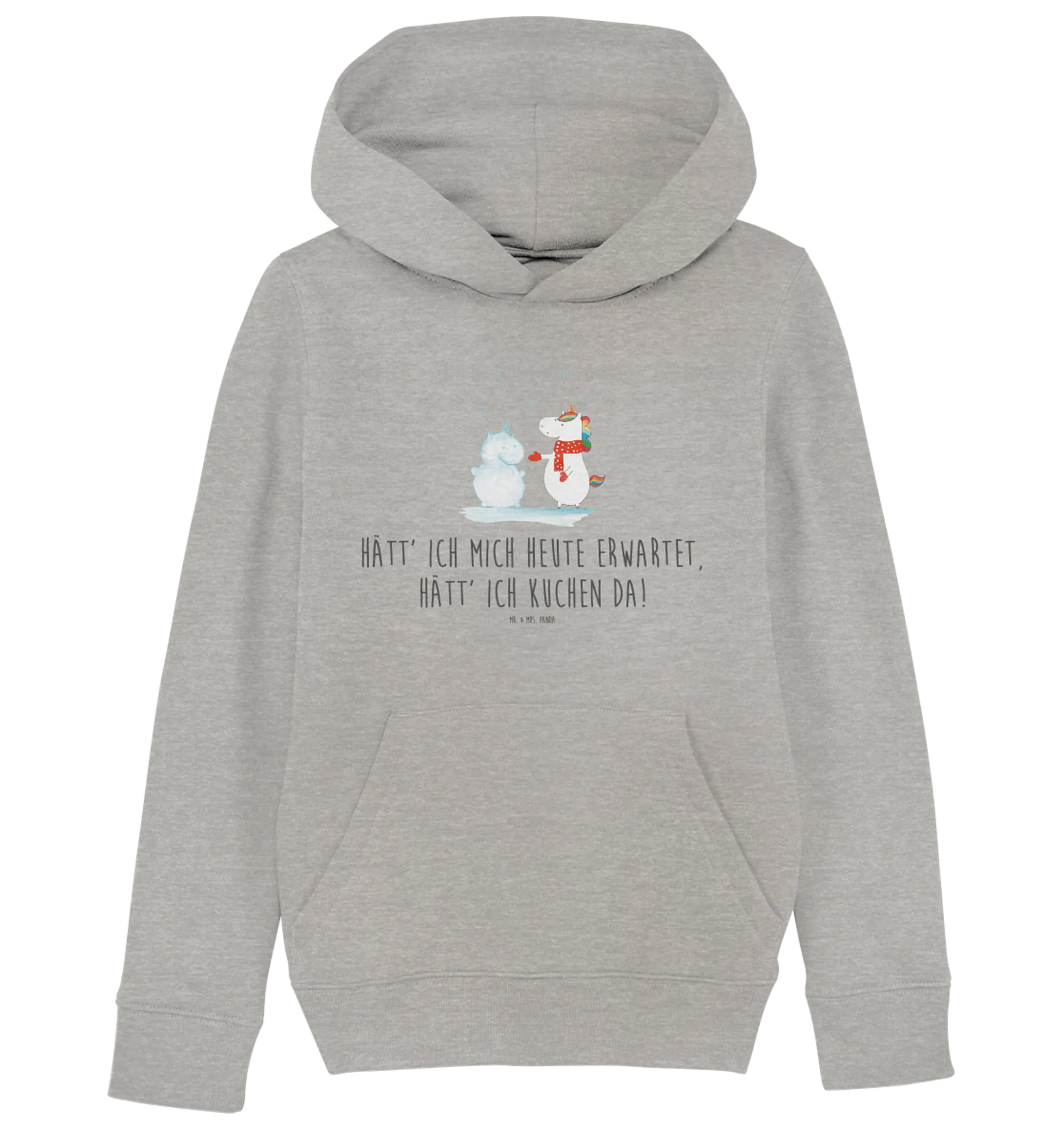 Der Organic Kinder Hoodie mit dem zauberhaften Motiv "Einhorn Schneemann" aus der Einhorn-Kollektion ist das perfekte Geschenk für kleine Einhorn-Fans und Weihnachtsliebhaber. Wenn der Winter naht und der erste Schnee fällt, dann ist dieser Hoodie genau das Richtige, um die Kälte mit einem Lächeln zu vertreiben. Mit seinem liebevoll designten Motiv von einem süßen Einhorn, das fröhlich einen Schneemann baut, zieht er alle Blicke auf sich. Die Botschaft "Hätt‘ ich mich heute erwartet, hätt‘ ich Kuchen da!" bringt nicht nur Kinderaugen zum Strahlen, sondern erinnert sie auch daran, wie viel Spaß es macht, zusammen zu feiern und die Wintertage zu genießen.