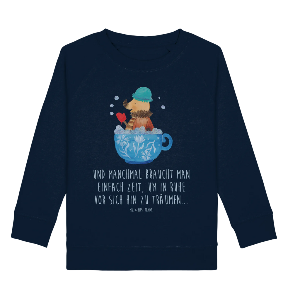 Herzlich Willkommen in der Welt des Nachtfalters Schaumbad von Mr. & Mrs. Panda! Dieser bezaubernde Organic Kinder Pullover hebt sich mit einem süßen Motiv hervor, das einen kleinen Nachtfalter zeigt, der es sich in einer Kaffeetasse gemütlich gemacht hat, um in einem entspannenden Schaumbad zu entspannen.