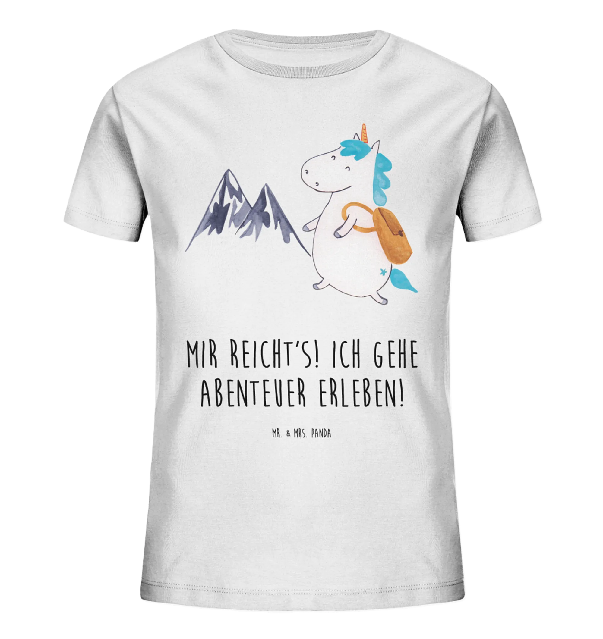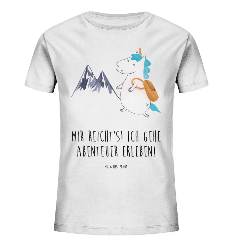 Entdecke das zauberhafte Organic Kinder T-Shirt Einhorn Bergsteiger aus der beliebten Einhorn Kollektion von Mr. & Mrs. Panda! Dieses T-Shirt ist mehr als nur ein Kleidungsstück – es ist ein Abenteuer für dein Kind! Mit dem niedlichen Motiv eines Einhorns, das mit seinem Rucksack die Berge erklimmt, inspiriert es kleine Abenteurer und Entdecker, die Lust haben, die Welt zu erkunden. Die Botschaft darunter, 'Mir reicht's! Ich gehe Abenteuer erleben!', spricht das Abenteuerherz an und regt die Fantasie an.