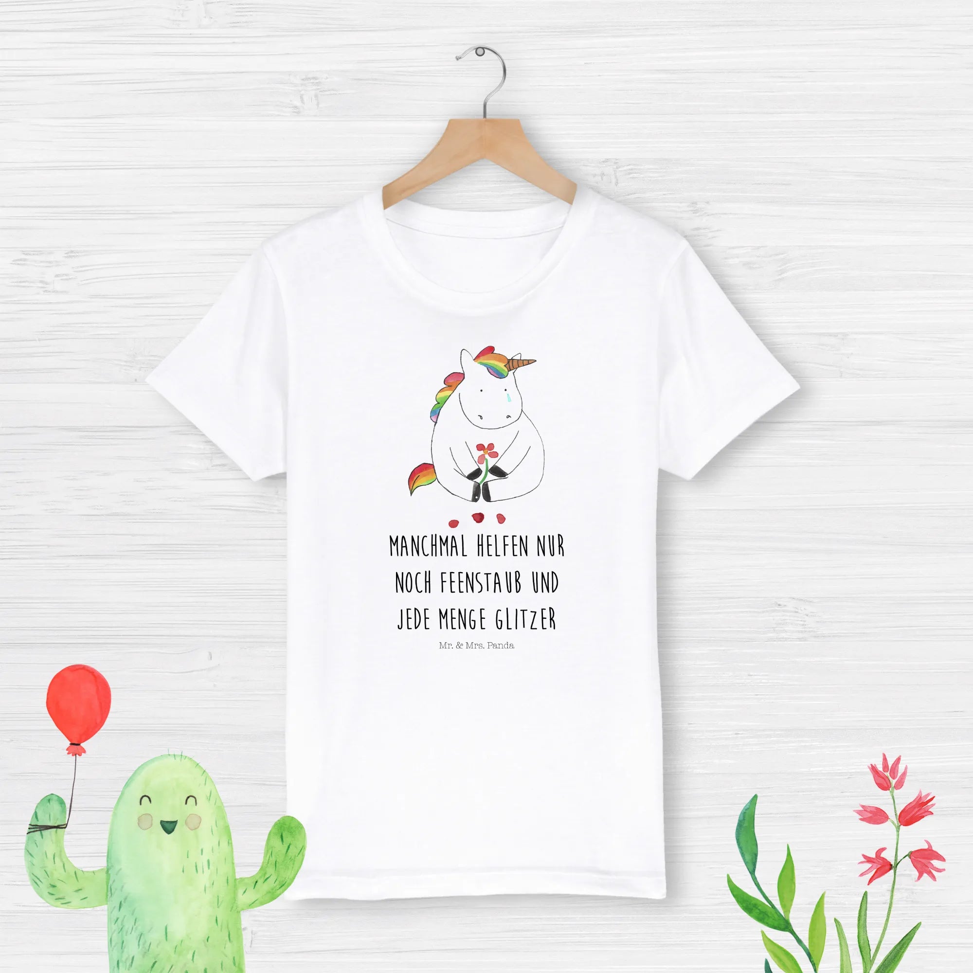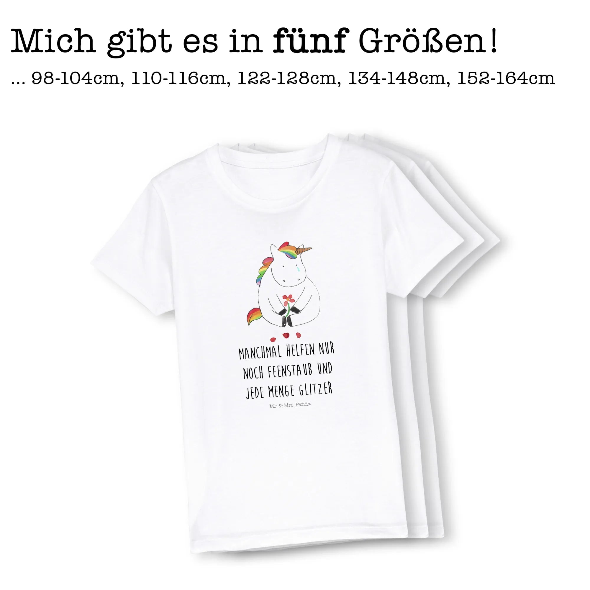 Der hohe Tragekomfort und die liebevollen Designs machen es zu einem Must-have in jedem Kleiderschrank. Die Einhorn-Kollektion von Mr. & Mrs. Panda bringt die zauberhafte Welt der Einhörner zu dir nach Hause. Wenn dein Kind trübe Gedanken hat, wird dieses T-Shirt ein Lächeln in sein Gesicht zaubern.