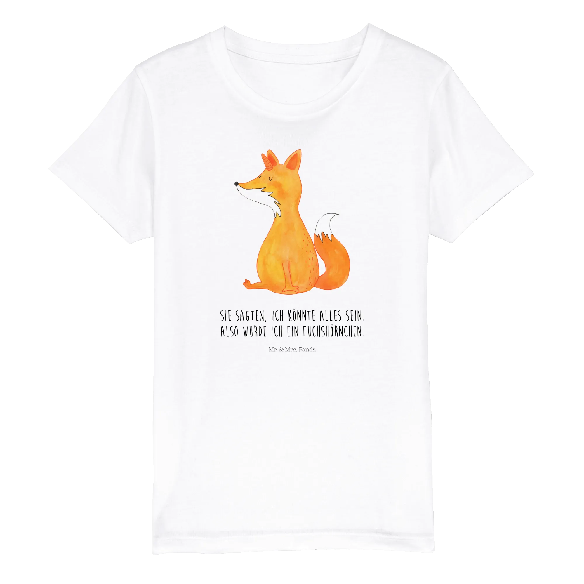 Suchst du ein nachhaltiges, liebevoll gestaltetes Geschenk für kleine Träumerinnen und Träumer? Unser Kinder T-Shirt aus der Einhorn - Kollektion von Mr. & Mrs. Panda vereint eine zarte Aquarell-Illustration mit einem frechen Spruch: „Sie sagten, ich könnte alles sein. Also wurde ich ein Fuchshörnchen.“ Das Motiv zeigt einen orange-gelb schimmernden Fuchs mit einem spiralförmigen Einhornhorn – ein charmantes, phantasievolles Design, das sowohl Mädchen als auch Jungen begeistert.