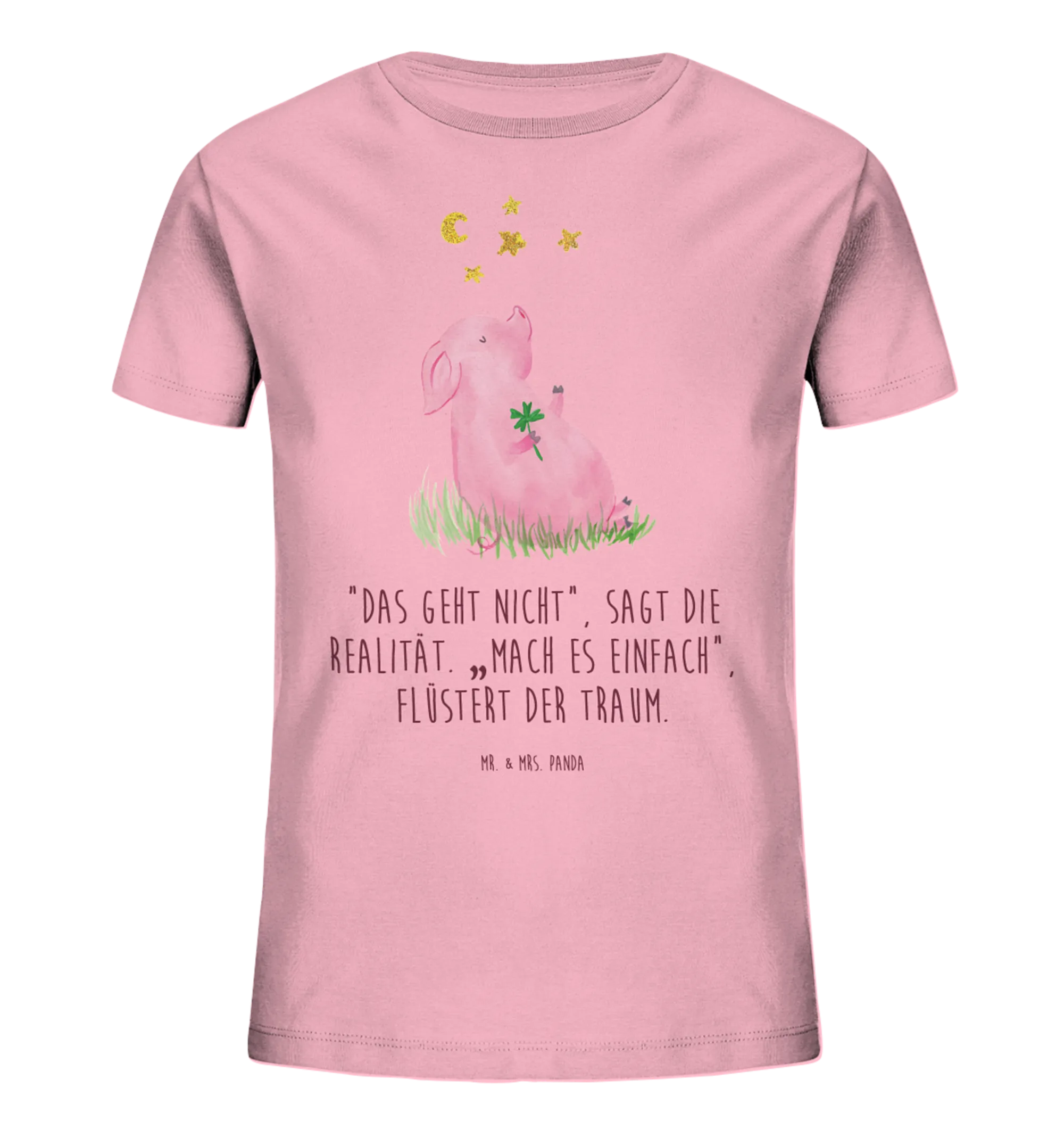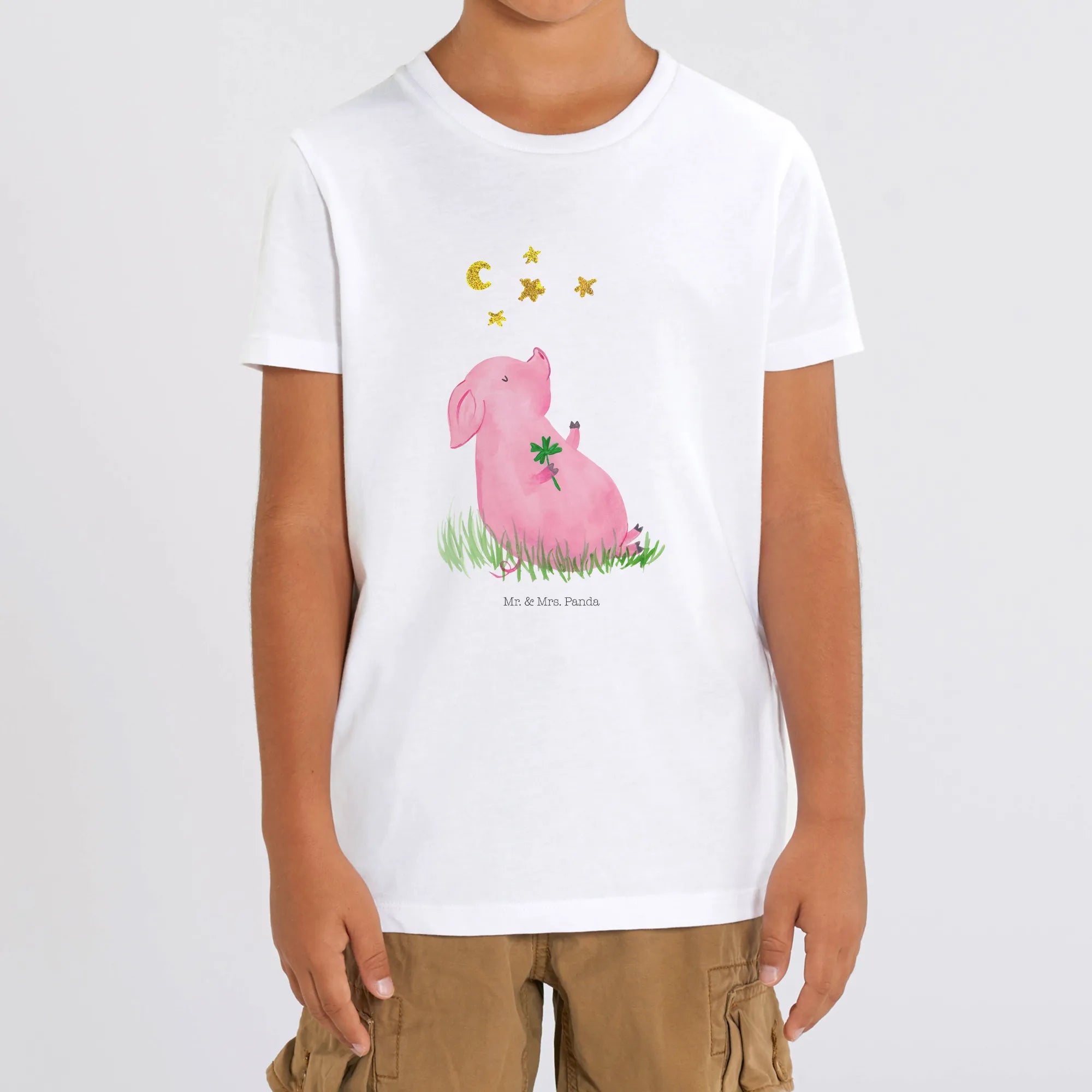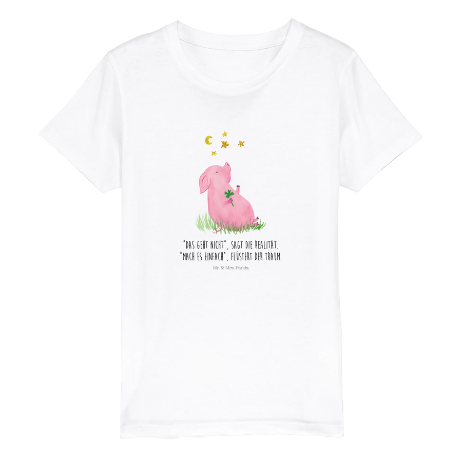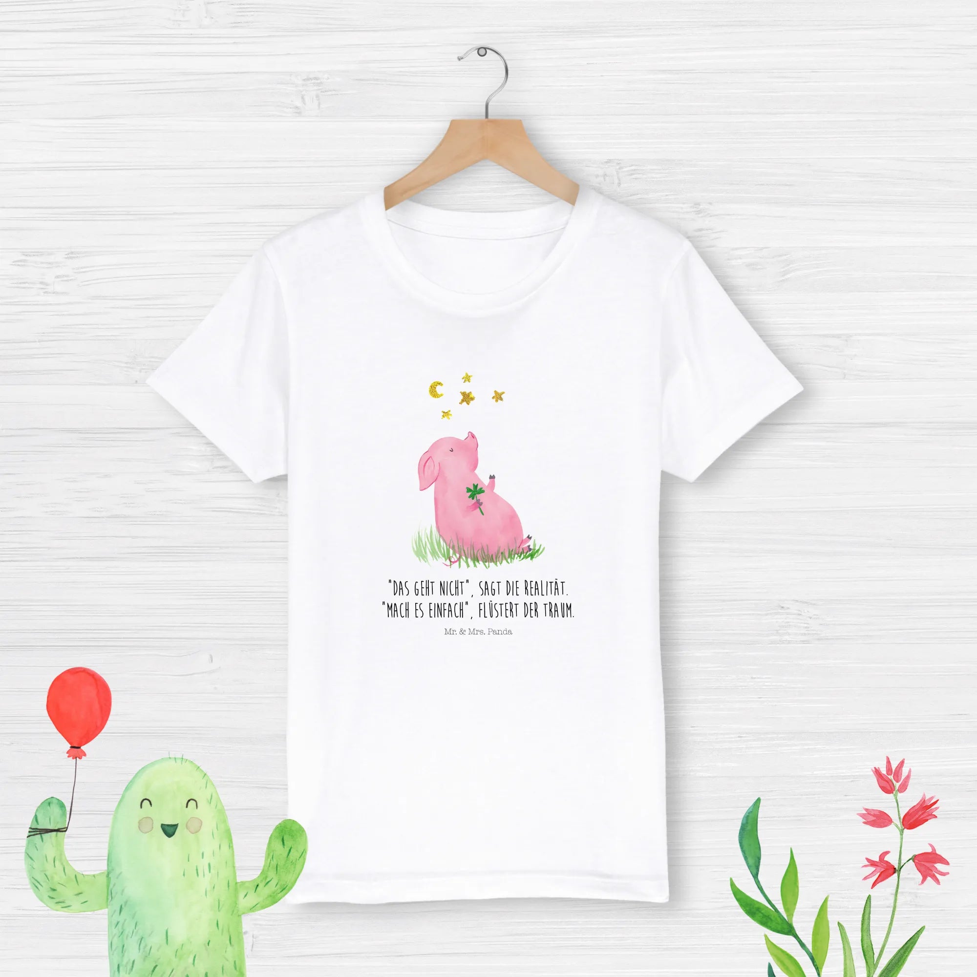 Das organic Kinder T-Shirt mit dem süßen Glücksschwein-Motiv von Mr. & Mrs. Panda ist das perfekte Geschenk für kleine Glücksbringer und Träumer.