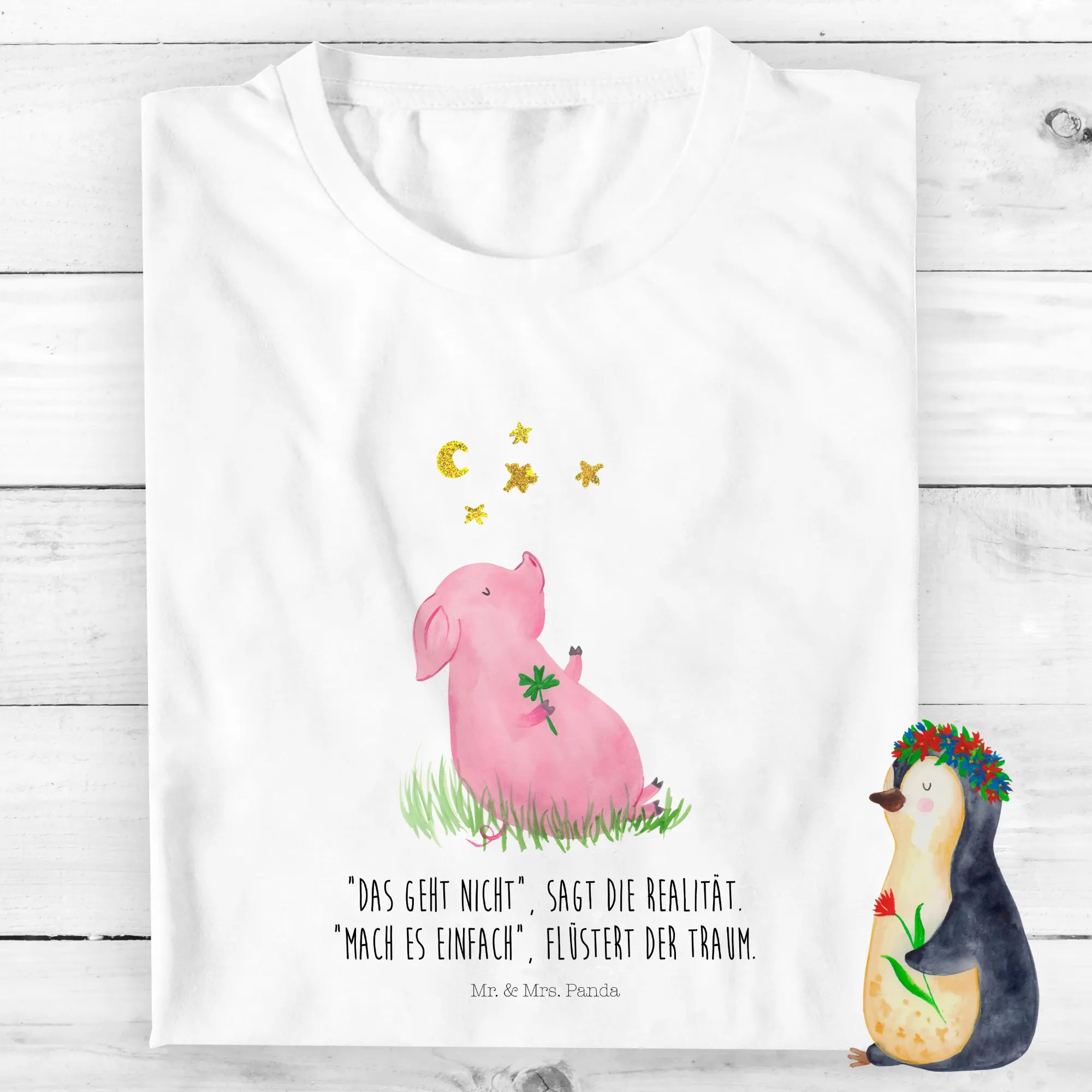 Mit jedem Tag, den dein Kind dieses T-Shirt trägt, erinnert es daran, dass man an seine Träume glauben kann. Sorgfältig handgezeichnet von Mrs. Panda, bietet dieses T-Shirt nicht nur eine hohe Qualität, sondern auch eine liebevolle Verarbeitung, die jedes Herz höher schlagen lässt. Ein Glücksschwein für mutige Mädchen und Jungen, die Freude und Glück in ihr Leben bringen wollen! Schenke Glück, positive Energie und individuelle Freude mit dem Glücksschwein T-Shirt von Mr. & Mrs. Panda - das perfekte Geschenk für kleine Träumer!