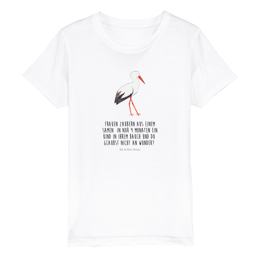 Das Organic Kinder T-Shirt mit dem süßen Storch-Motiv von Mr. & Mrs. Panda ist das perfekte Geschenk für werdende Mütter und ihre Kinder.