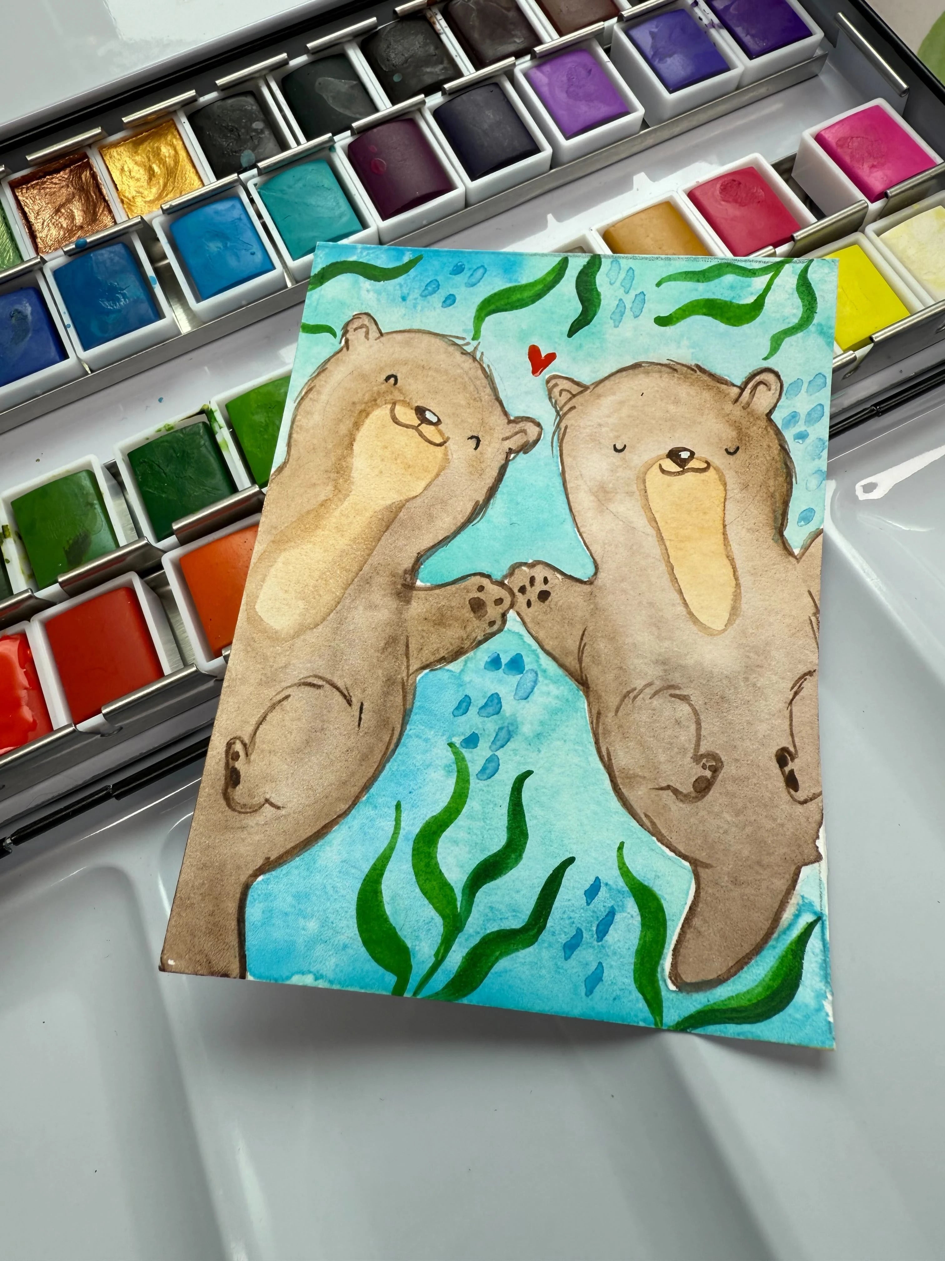 Emotion trifft Einzigartigkeit: Die verspielte Darstellung der Otter weckt sofort Sympathie und Nähe. Als Original Aquarell ist jedes Detail einmalig – ein echtes Sammlerstück für alle, die Originale schätzen.