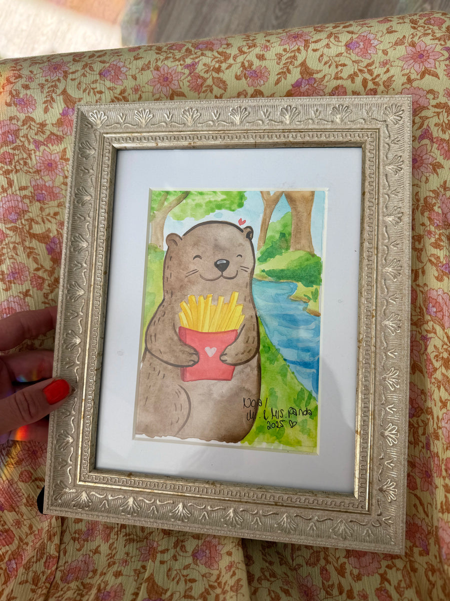 ORIGINAL Aquarell Zeichnung "Pommes-Otter" im Bilderrahmen – Mr. & Mrs. Panda
