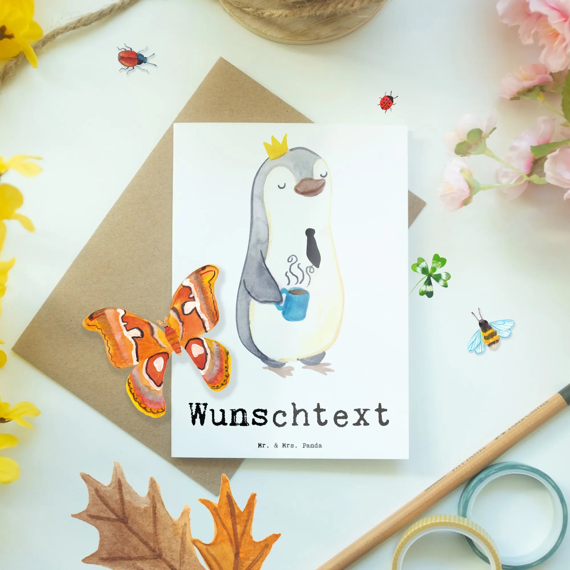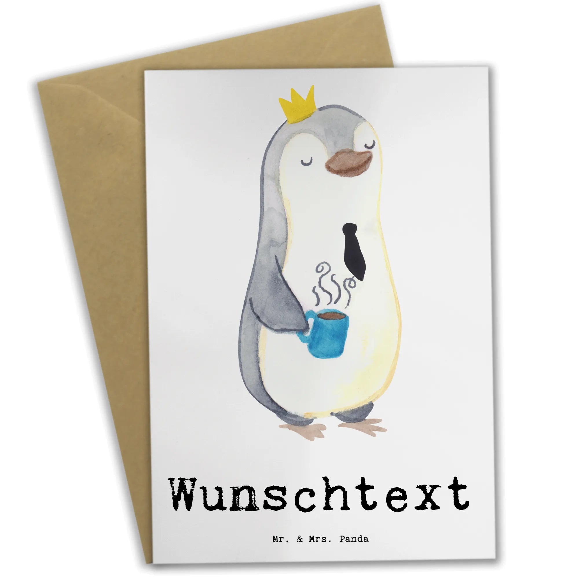 Das süße Design zeigt einen Pinguin mit einer Krone, der stolz seine Kaffeetasse hält – perfekt für einen Abteilungsleiter! Auf der Vorderseite kannst du deinen Wunschnamen oder Wunschtext anbringen, um damit den besonderen Charakter dieser Grußkarte zu unterstreichen. Der Slogan "Du bist nur ein halber Mensch, wenn du kein Abteilungsleiter bist" sorgt für ein Schmunzeln und macht die Karte zu einem echten Hingucker.