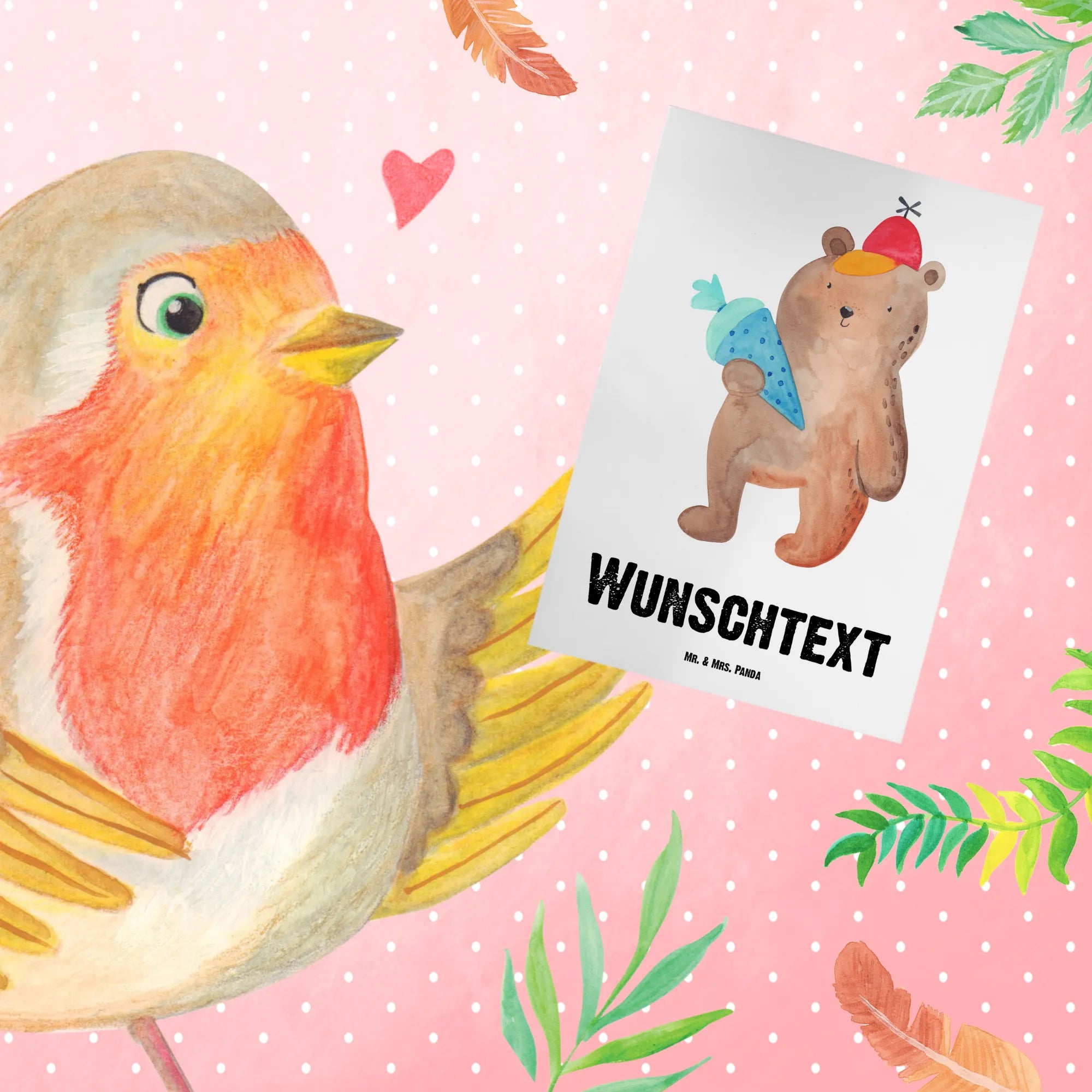 Hurra! endlich Schule! – Unsere personalisierte Grußkarte "Bär mit Schultüte" von Mr. & Mrs. Panda ist das perfekte Geschenk zum Schulanfang. Der niedliche Bär hält stolz seine Schultüte und lächelt das zukünftige Schulkind mutmachend an. Das Motiv stammt aus der liebevollen Bär-Kollektion und wurde von Mrs. Panda als Aquarellzeichnung gestaltet.