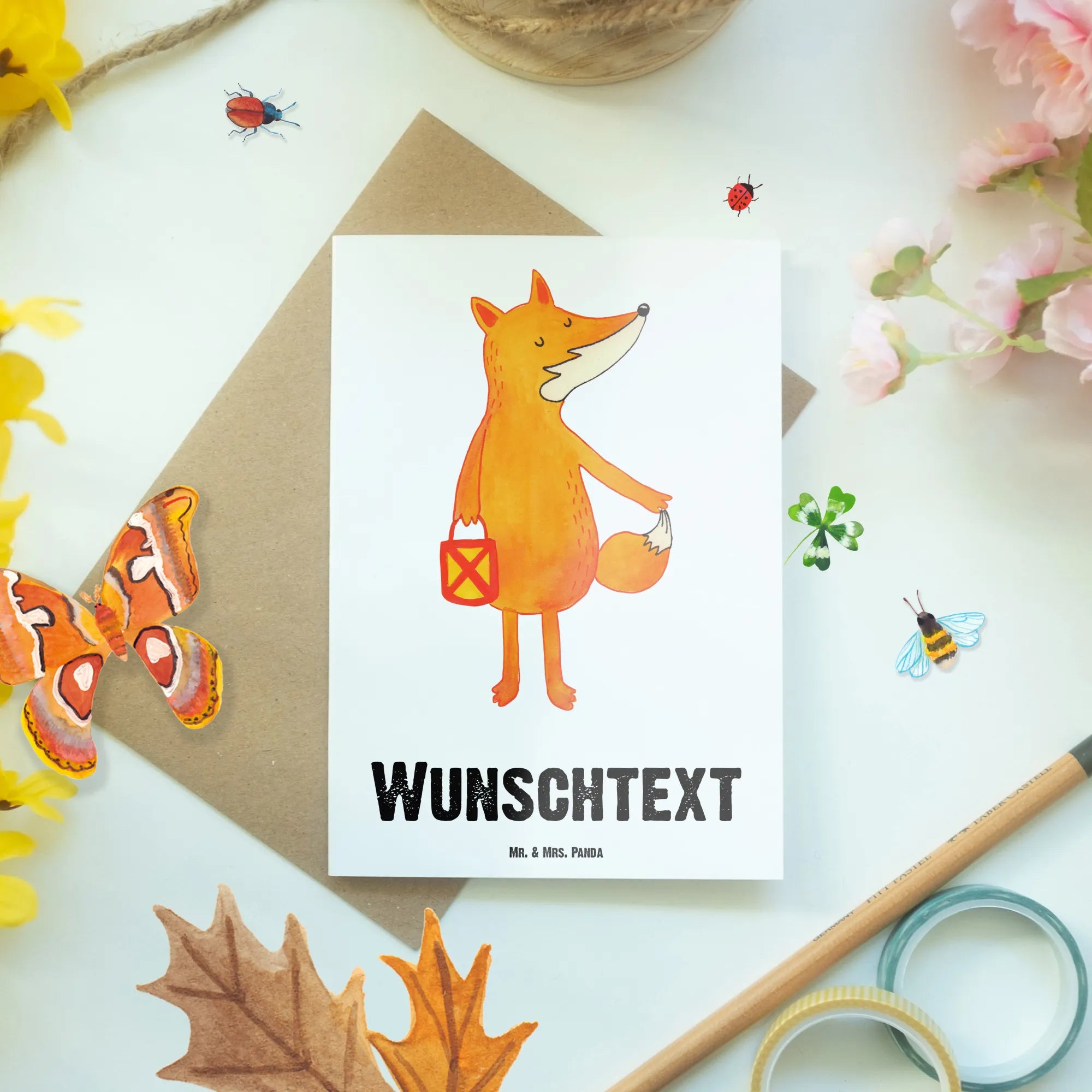 Personalisierte Grußkarte Fuchs Laterne – Mr. & Mrs. Panda