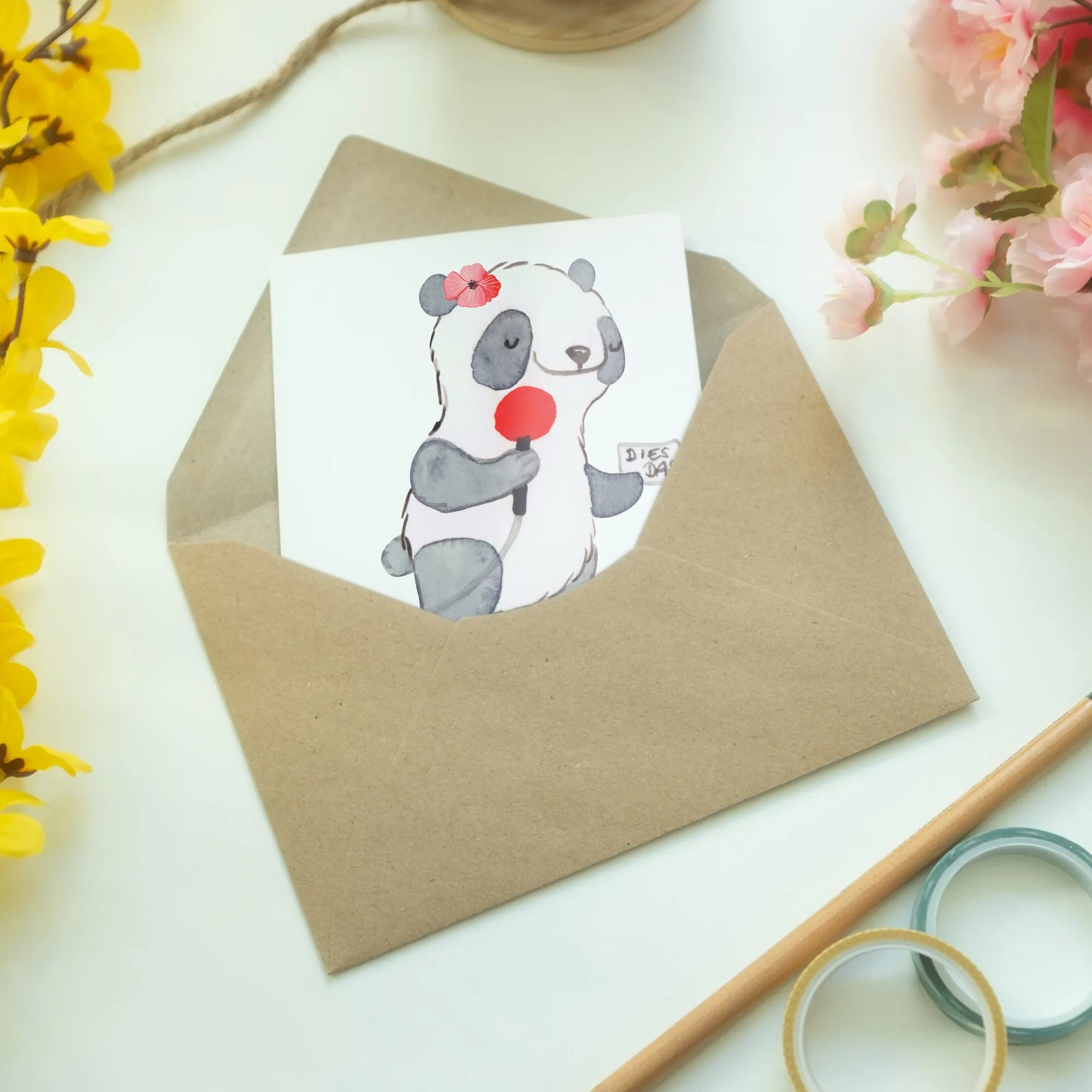 Die personalisierte Grußkarte "Reporterin mit Herz" von Mr. & Mrs. Panda ist das perfekte Geschenk für alle Journalisten und Journalistinnen, egal zu welchem Anlass. Mit einem süßen Panda, der ein Mikrofon hält, und dem Spruch "Du bist nur ein halber Mensch, wenn du keine Reporterin bist" zaubert diese Karte ein Lächeln auf das Gesicht des Beschenkten.