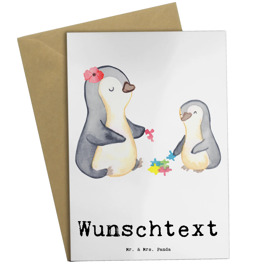 Entdecke unsere personalisierte Grußkarte "Sozialpädagogin mit Herz" aus der kreativen Berufe-Kollektion von Mr. & Mrs. Panda! Diese wunderschöne und einzigartige Grußkarte ist nicht nur eine perfekte Möglichkeit, um Deiner Wertschätzung für eine liebe Sozialpädagogin Ausdruck zu verleihen, sondern auch ein tolles Geschenk an Kollegen, Freunde oder Familienmitglieder, die in diesem Berufsfeld tätig sind. Das bezaubernde Motiv zeigt einen süßen weiblichen Pinguin, der zusammen mit einem anderen Pinguin spielerisch Dinge erarbeitet - eine wunderbare Darstellung dessen, was Sozialpädagogik ausmacht.