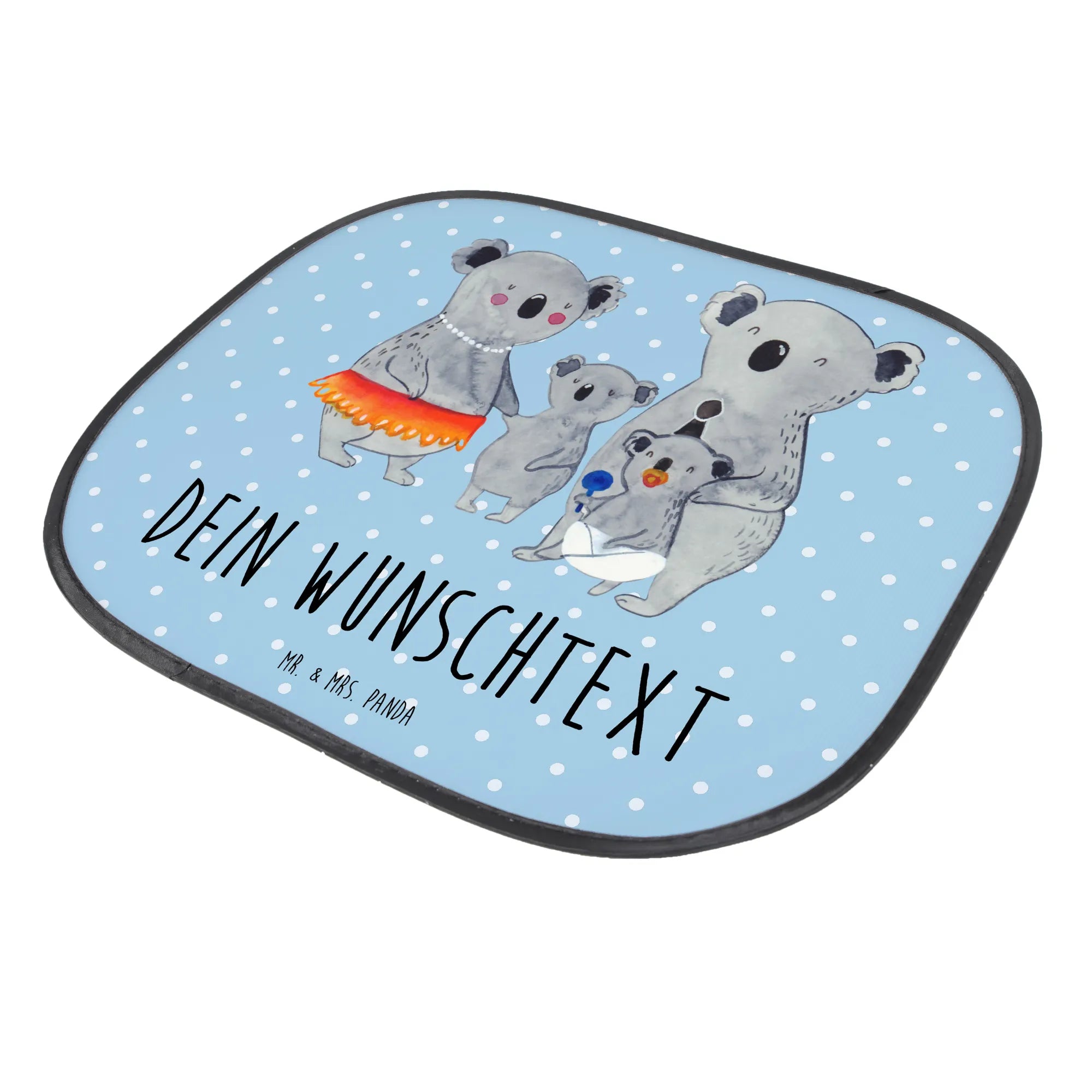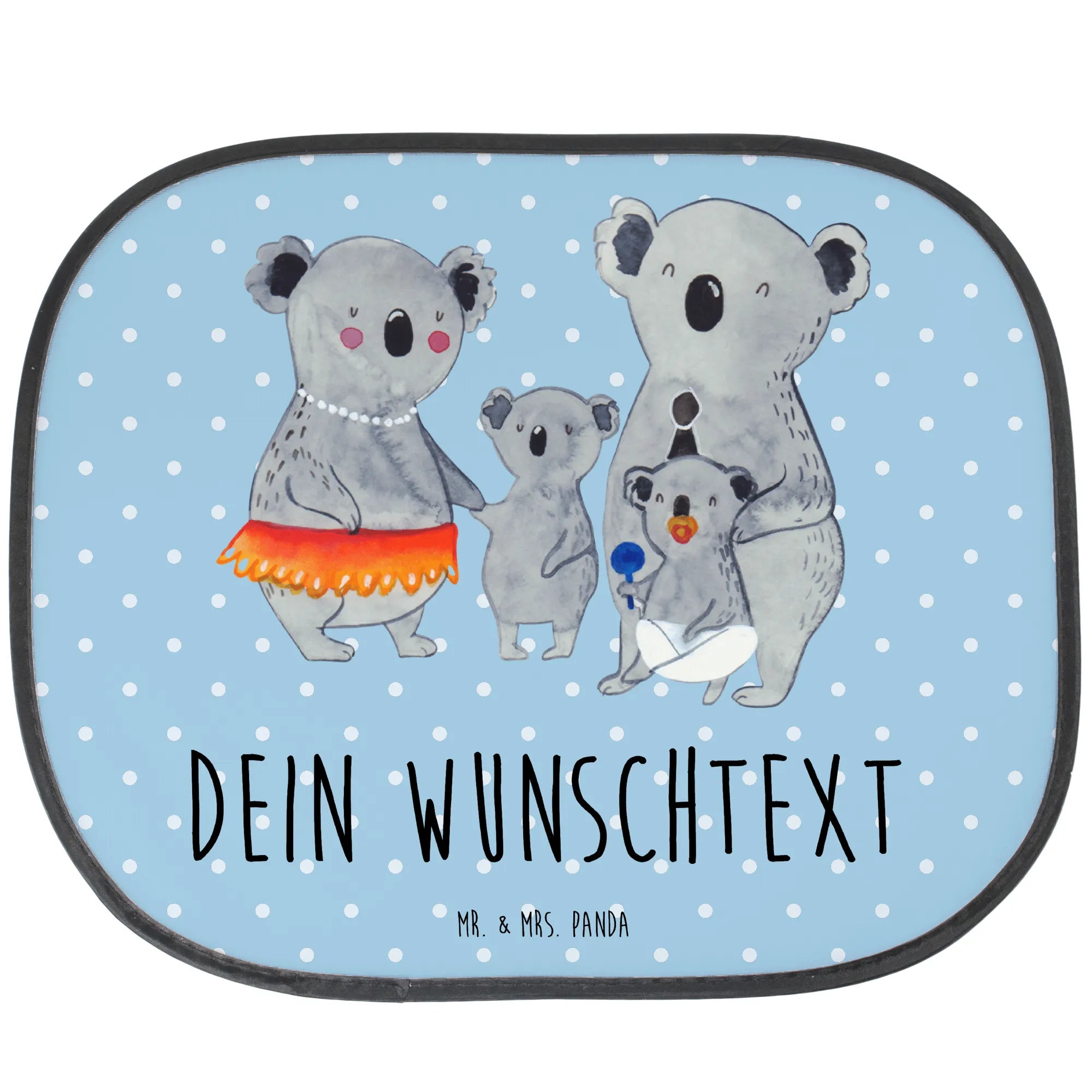 Personalisierbarer Sonnenschutz Koala Familie - Blau Pastell