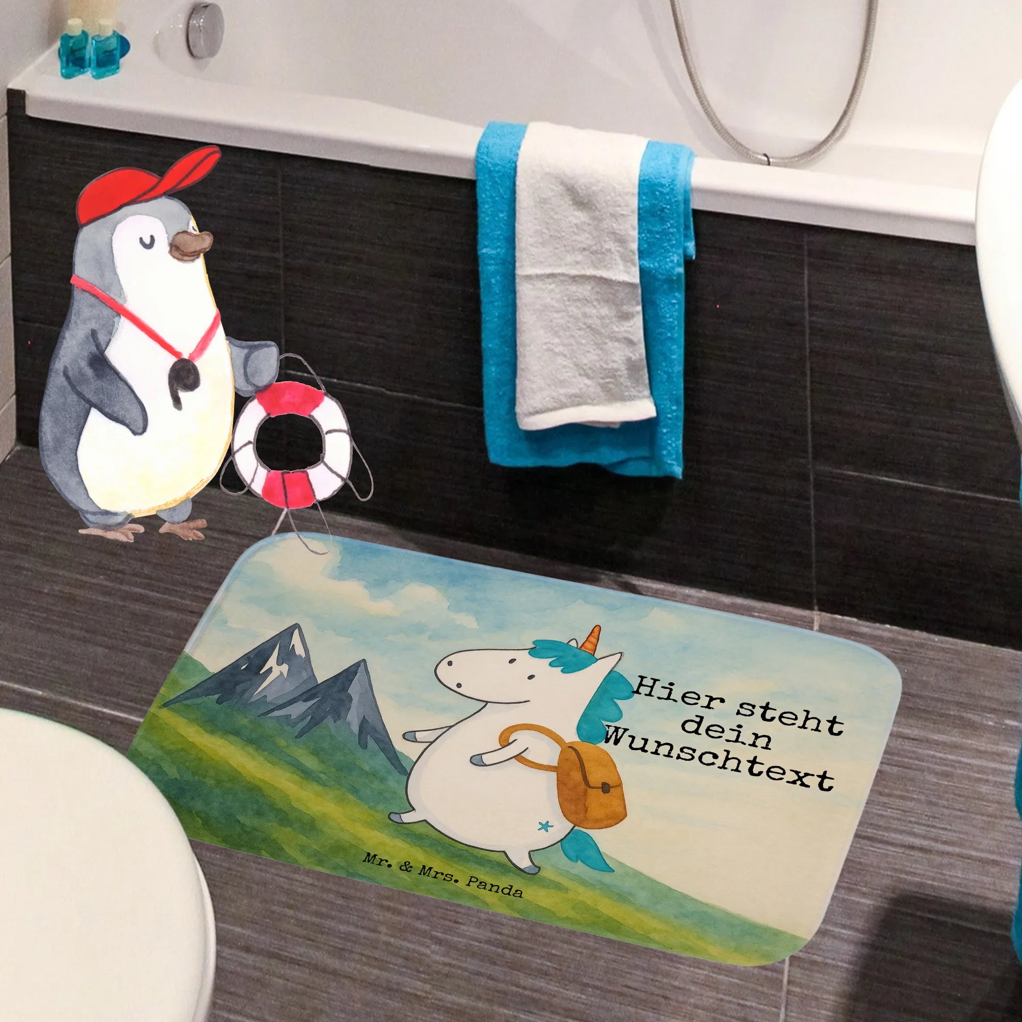 Personalisierte Badematte Einhorn Bergsteiger Design