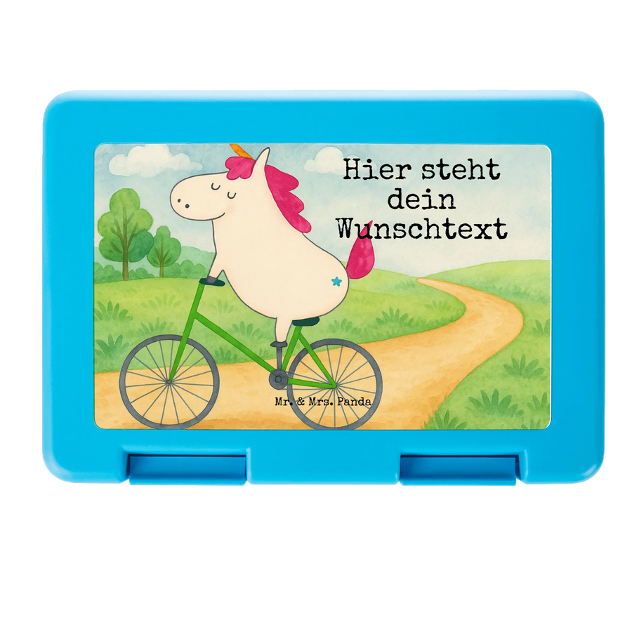 Personalisierte Brotdose Einhorn Radfahrer Design