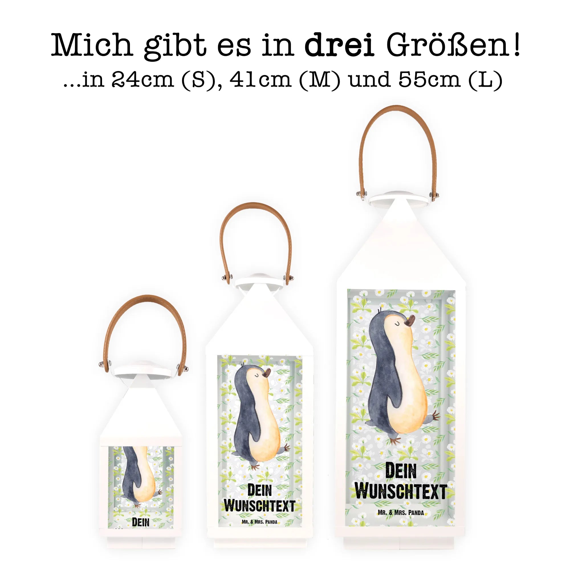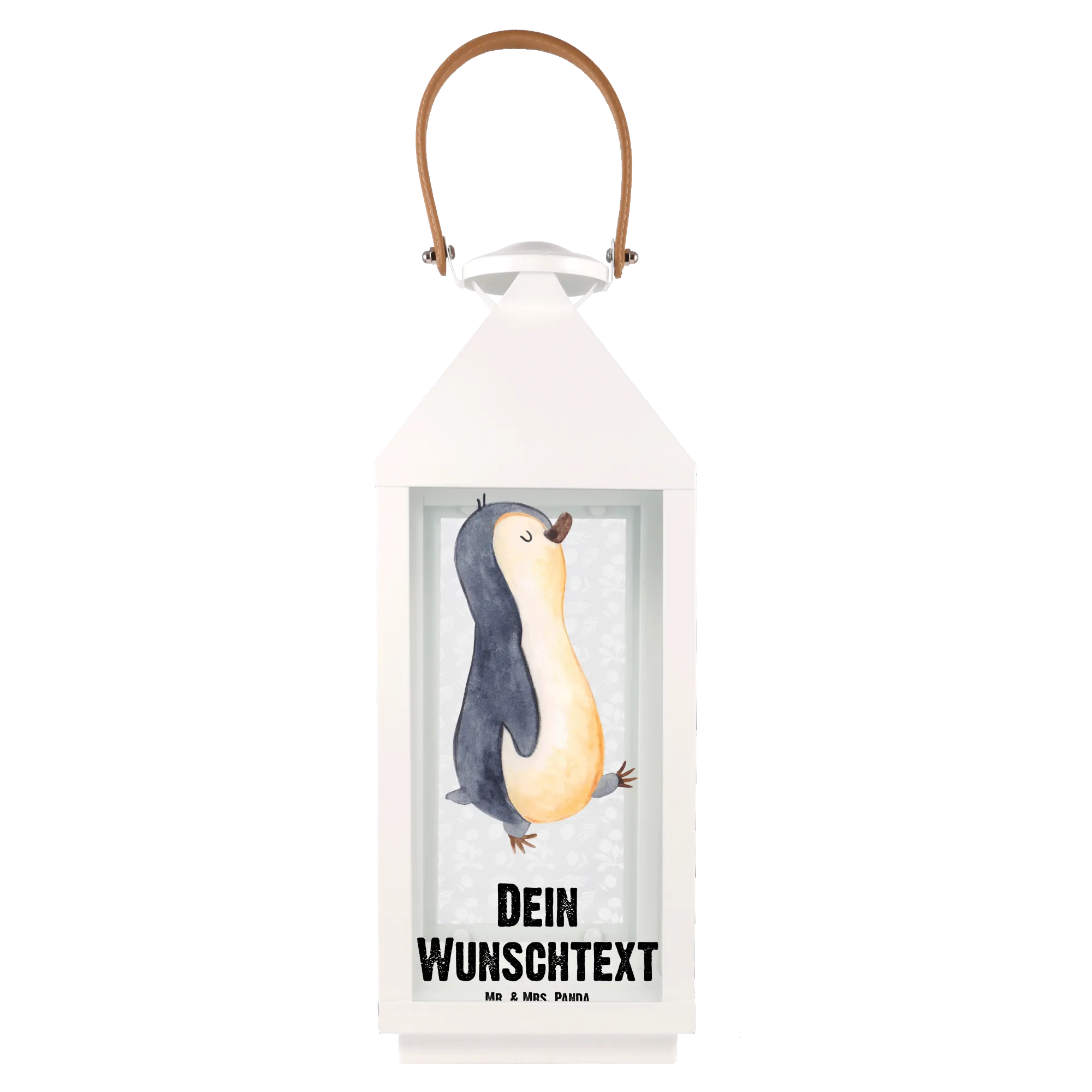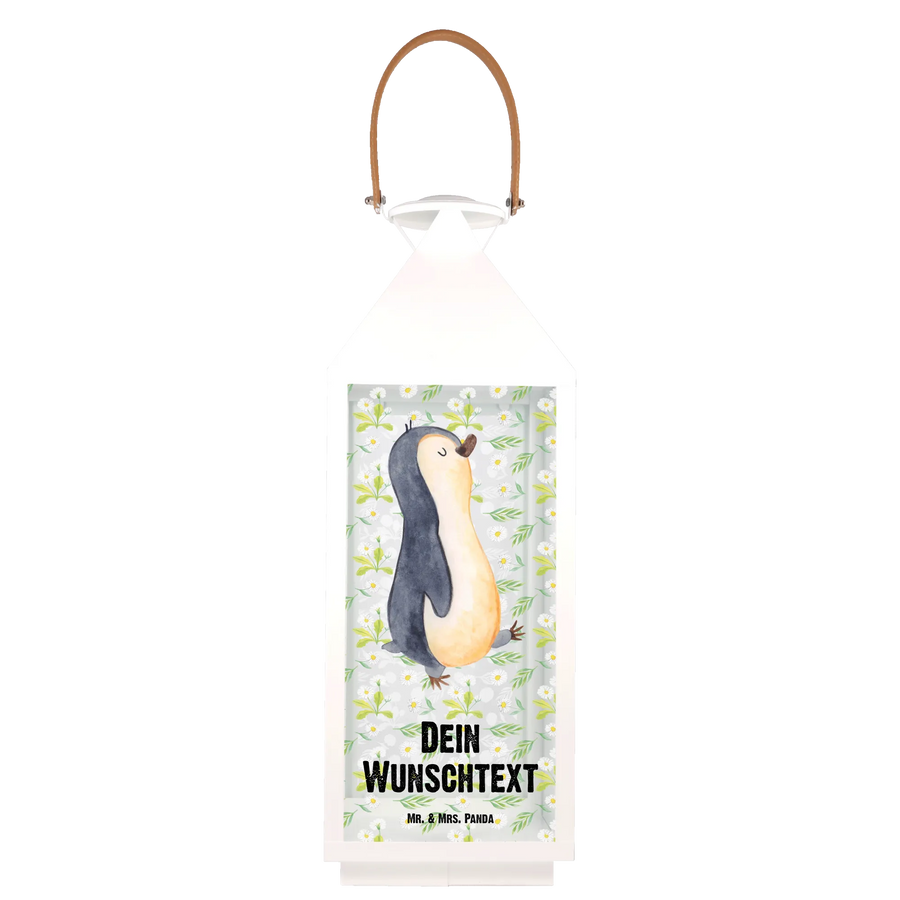 Die personalisierte Deko Laterne mit dem süßen Motiv "Pinguin marschierend" aus der einzigartigen Pinguin-Kollektion von Mr. & Mrs. Panda ist das perfekte Geschenk für jeden Anlass!