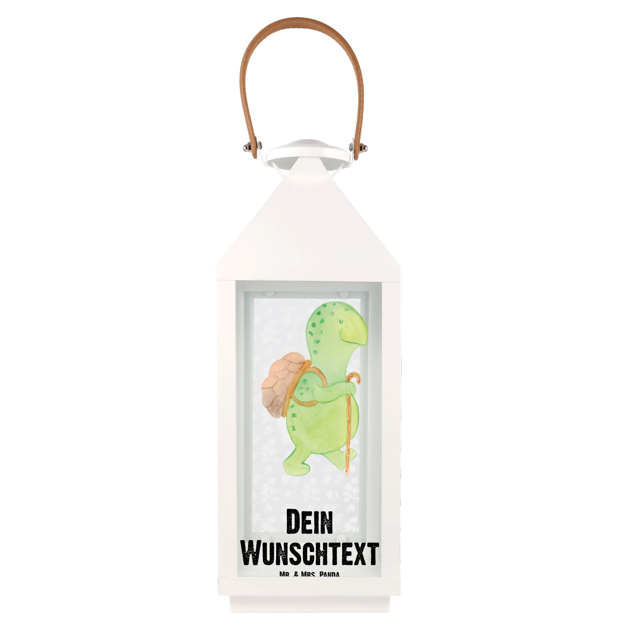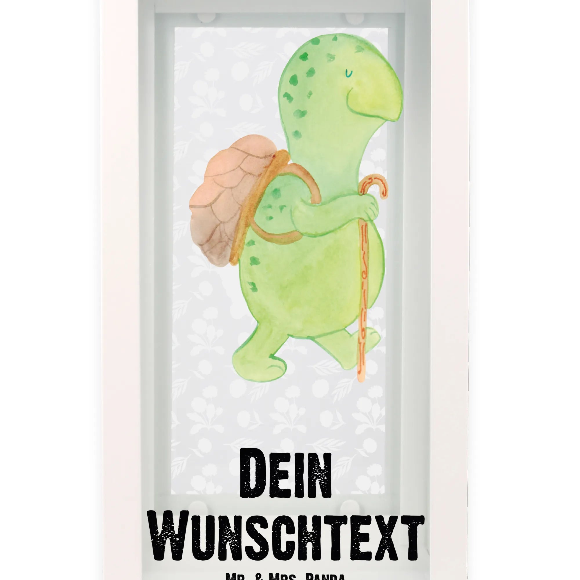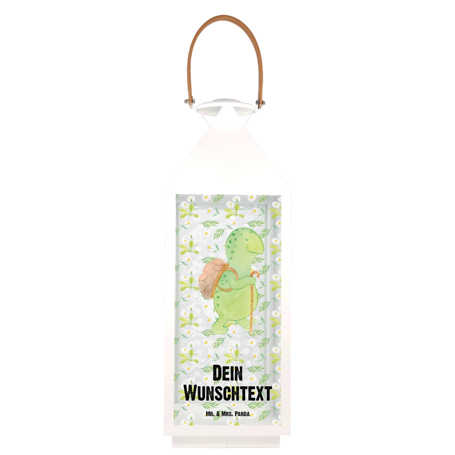 Die personalisierte Deko Laterne mit dem süßen Motiv der Schildkröte Wanderer von Mr. & Mrs. Panda ist das perfekte Geschenk für jeden Naturliebhaber und Schildkröten-Fan.