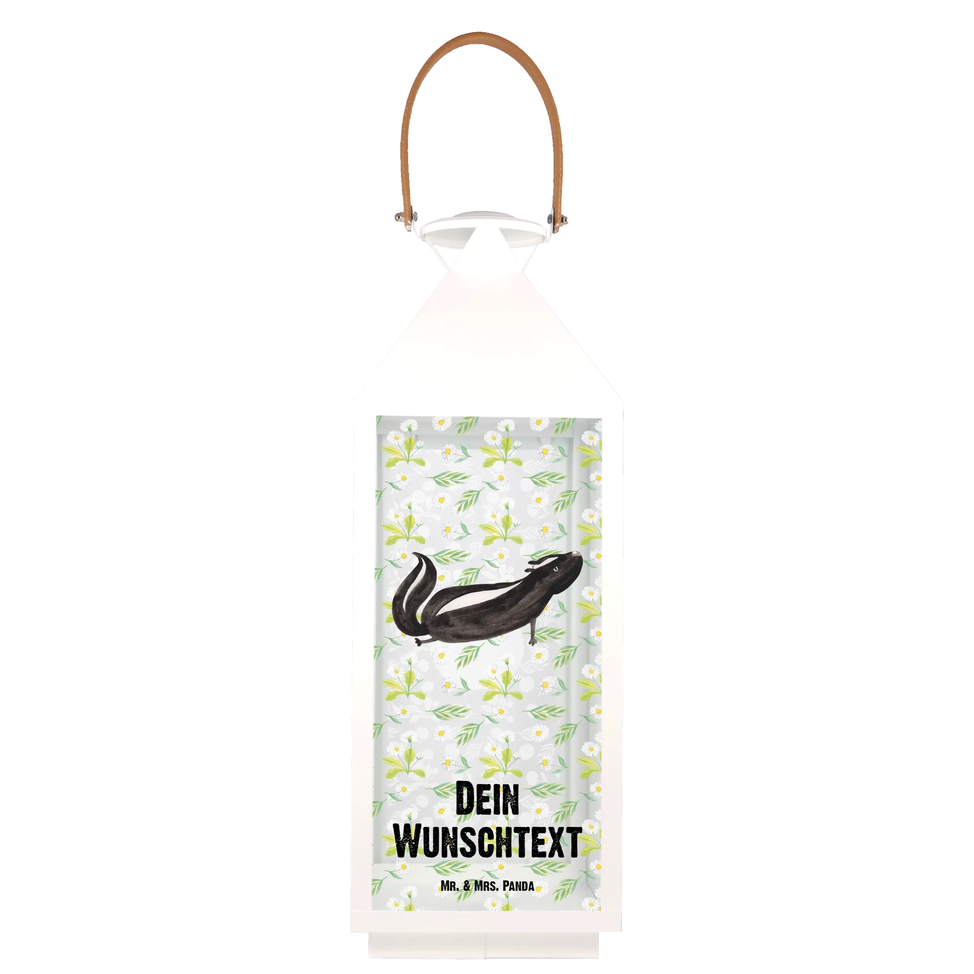 Jede Laterne ist einzigartig und kann sogar mit einem Wunschtext personalisiert werden, was sie zu einem ganz besonderen Geschenk macht. Die Stinktier-Kollektion von Mr. & Mrs. Panda ist eine liebevolle Hommage an den treuen Freund von Mrs. Panda und bringt eine Portion Lebensfreude in jeden Raum.